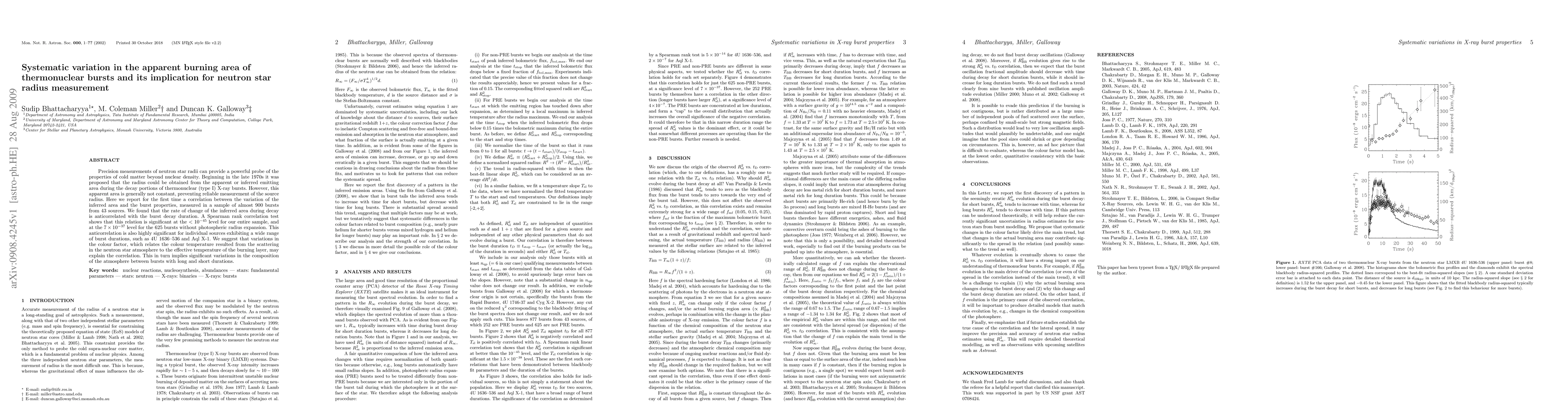This paper investigates the systematic variation in the apparent burning area of thermonuclear bursts, revealing a significant anticorrelation between the rate of change of the inferred area and the burst decay duration. This finding suggests that variations in the colour factor, and consequently the atmosphere composition, may impact neutron star radius measurements.