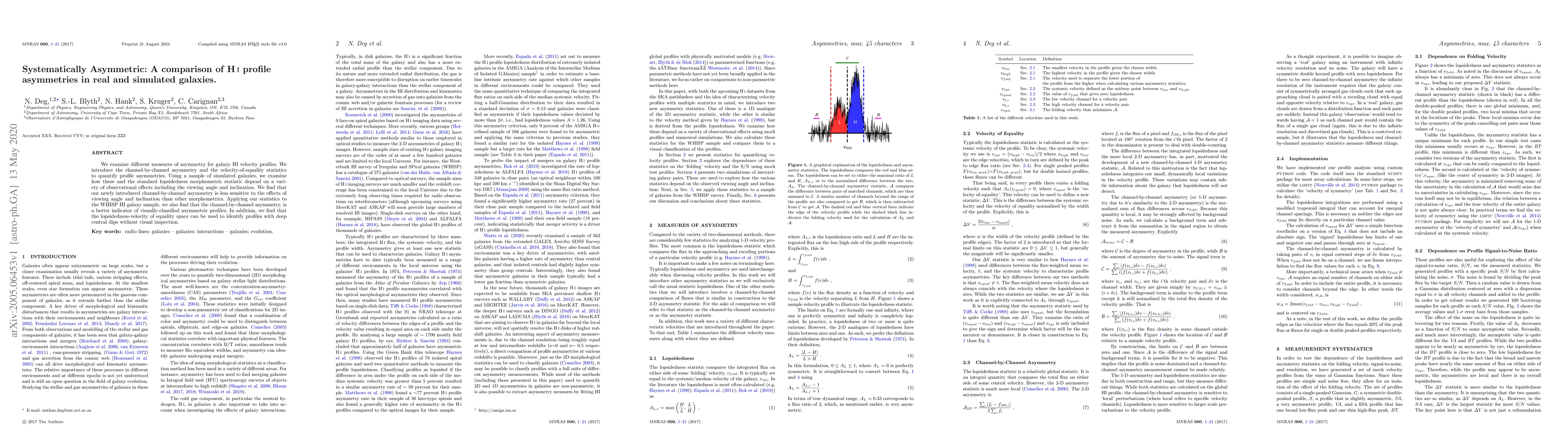 We examine different measures of asymmetry for galaxy HI velocity profiles. We introduce the channel-by-channel asymmetry and the velocity-of-equality statistics to quantify profile asymmetries. Using a sample of simulated galaxies, we examine how these and the standard lopsidedness morphometric statistic depend on a variety of observational effects including the viewing angle and inclination. We find that our newly introduced channel-by-channel asymmetry is less sensitive to the effects of viewing angle and inclination than other morphometrics. Applying our statistics to the WHISP HI galaxy sample, we also find that the channel-by-channel asymmetry, is a better indicator of visually-classified asymmetric profiles. In addition, we find that the lopsidedness-velocity of equality space can be used to identify profiles with deep central dips without visual inspection.
