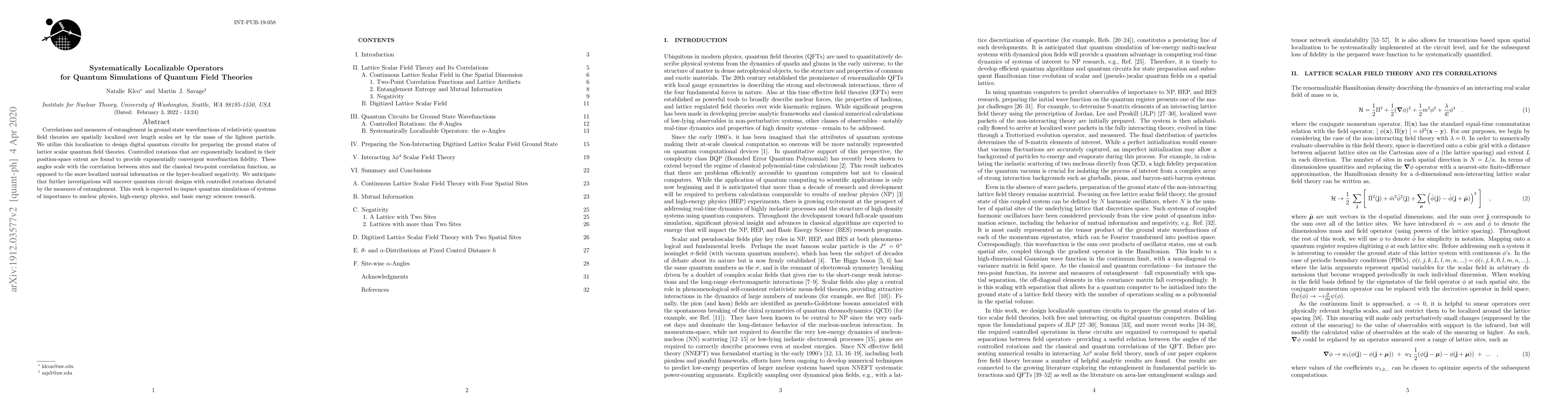 This paper proposes systematically localizable operators for quantum simulations of quantum field theories, showing that controlled rotations based on spatial correlations yield exponentially convergent fidelity for ground state preparation. The approach is expected to advance quantum simulations in nuclear and high-energy physics.