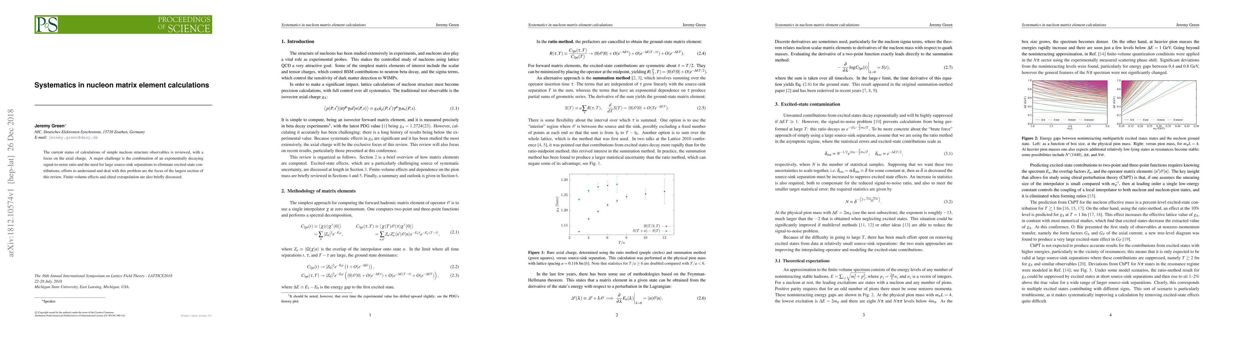 This paper reviews current methodologies for calculating nucleon structure observables, emphasizing the axial charge. It highlights the challenge of balancing signal-to-noise ratio and source-sink separation to mitigate excited-state contributions, while also briefly addressing finite-volume effects and chiral extrapolation.