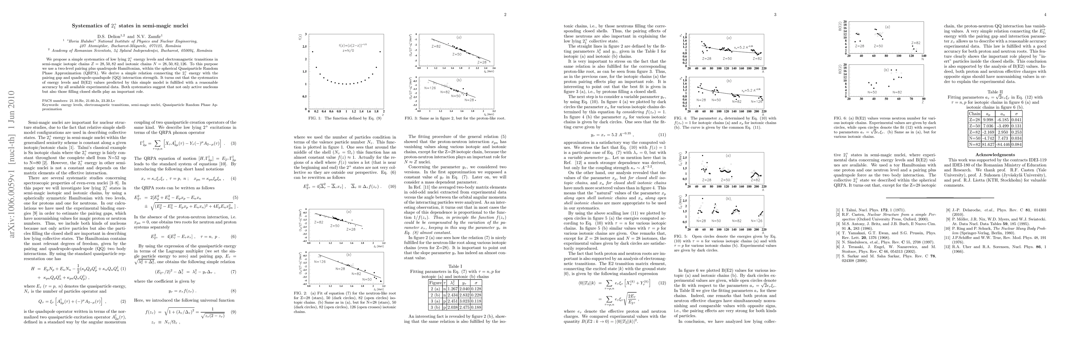 We propose a simple systematics of low lying 2+ energy levels and electromagnetic transitions in semi-magic isotopic chains Z=28,50,82 and isotonic chains N=28,50,82,126. To this purpose we use a two-level pairing plus quadrupole Hamiltonian, within the spherical Quasiparticle Random Phase Approximation (QRPA). We derive a simple relation connecting the 2+ energy with the pairing gap and quadrupole-quadupole (QQ) interaction strength. It turns out that the systematics of energy levels and B(E2) values predicted by this simple model is fulfilled with a reasonable accuracy by all available experimental data. Both systematics suggest that not only active nucleons but also those filling closed shells play an important role.