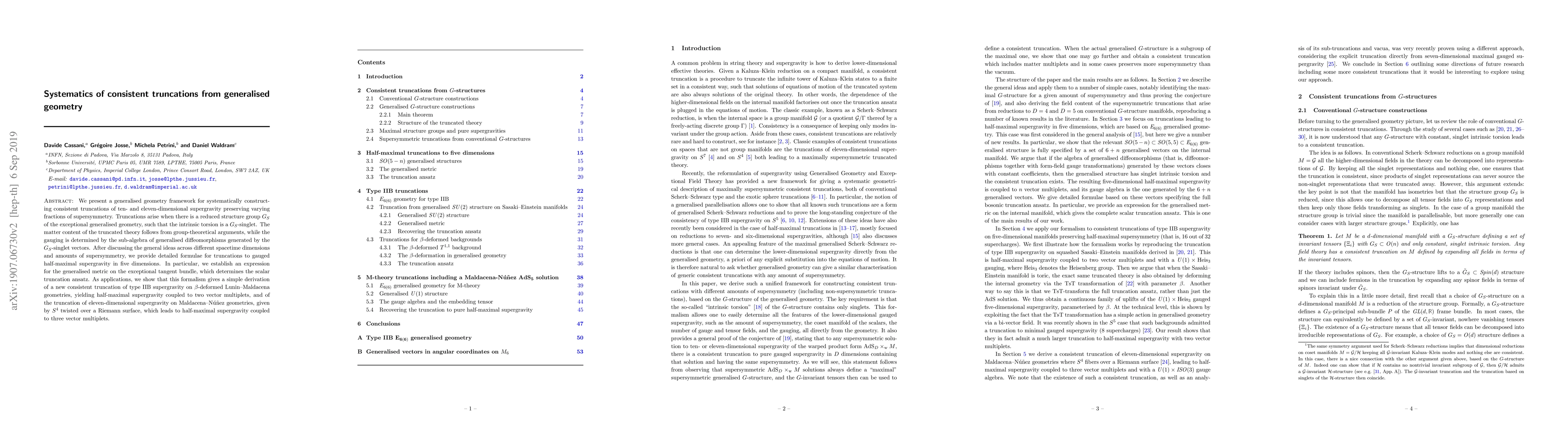 This paper develops a generalised geometry framework for systematically truncating ten- and eleven-dimensional supergravity theories, preserving varying fractions of supersymmetry. The study provides detailed formulae for half-maximal supergravity truncations in five dimensions and applies the formalism to derive new consistent truncations of type IIB and eleven-dimensional supergravity.