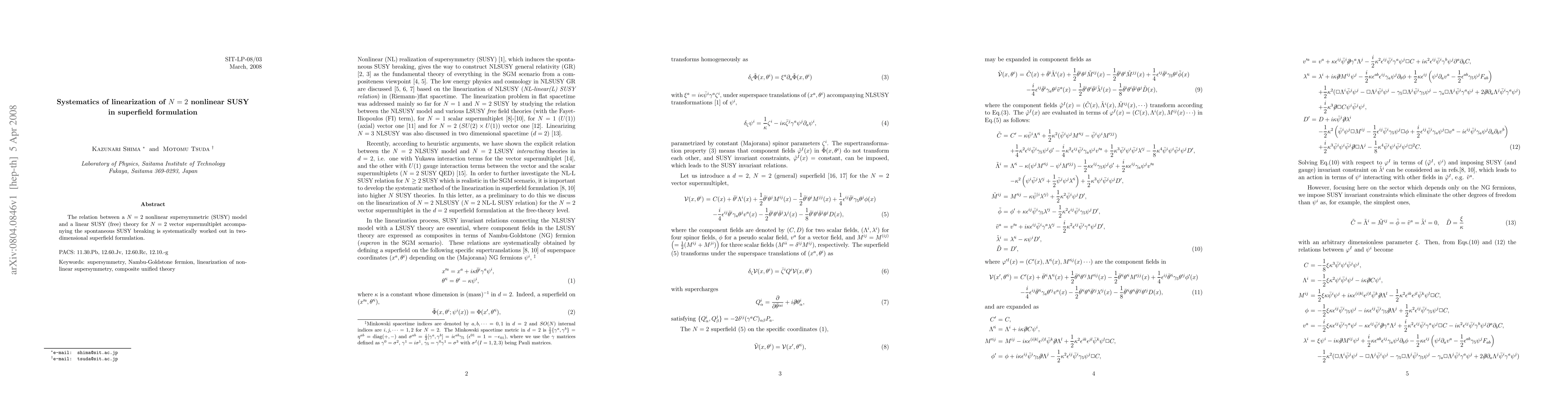 The relation between a N = 2 nonlinear supersymmetric (SUSY) model and a linear SUSY (free) theory for $N = 2$ vector supermultiplet accompanying the spontaneous SUSY breaking is systematically worked out in two-dimensional superfield formulation.