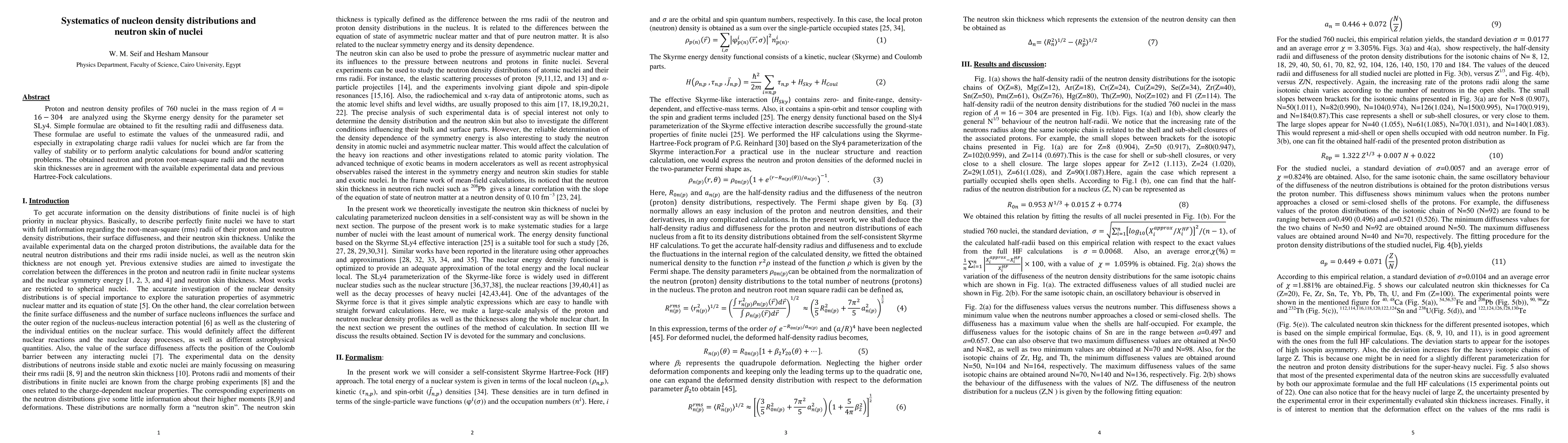This study analyzes proton and neutron density profiles of 760 nuclei to develop simple formulae for estimating radii and skin thicknesses, in agreement with experimental data.