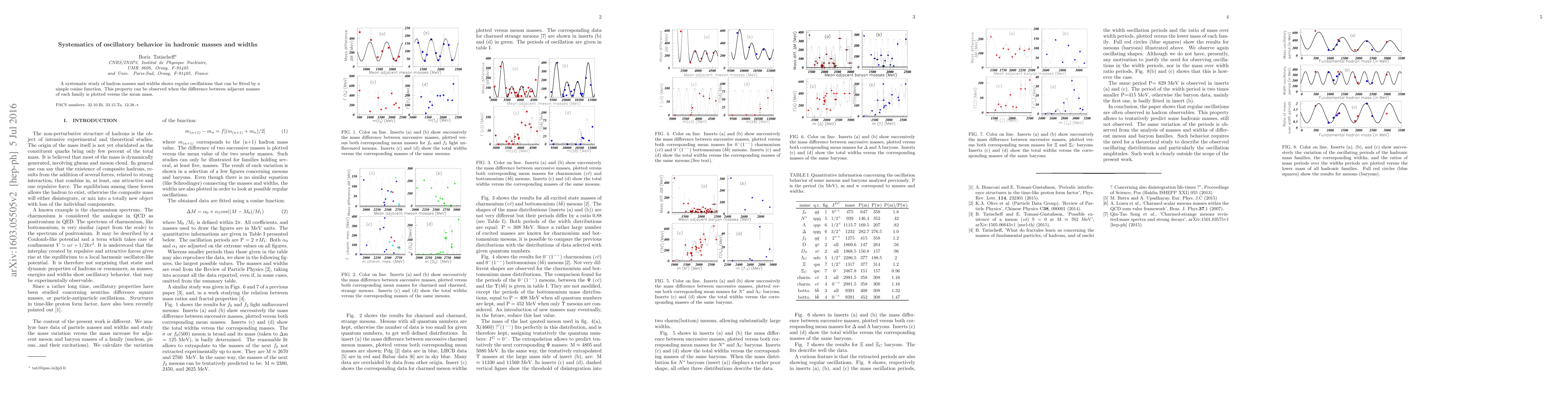 A study of hadron masses reveals regular oscillations that can be described by a simple cosine function. These oscillations occur when comparing adjacent masses within each family.