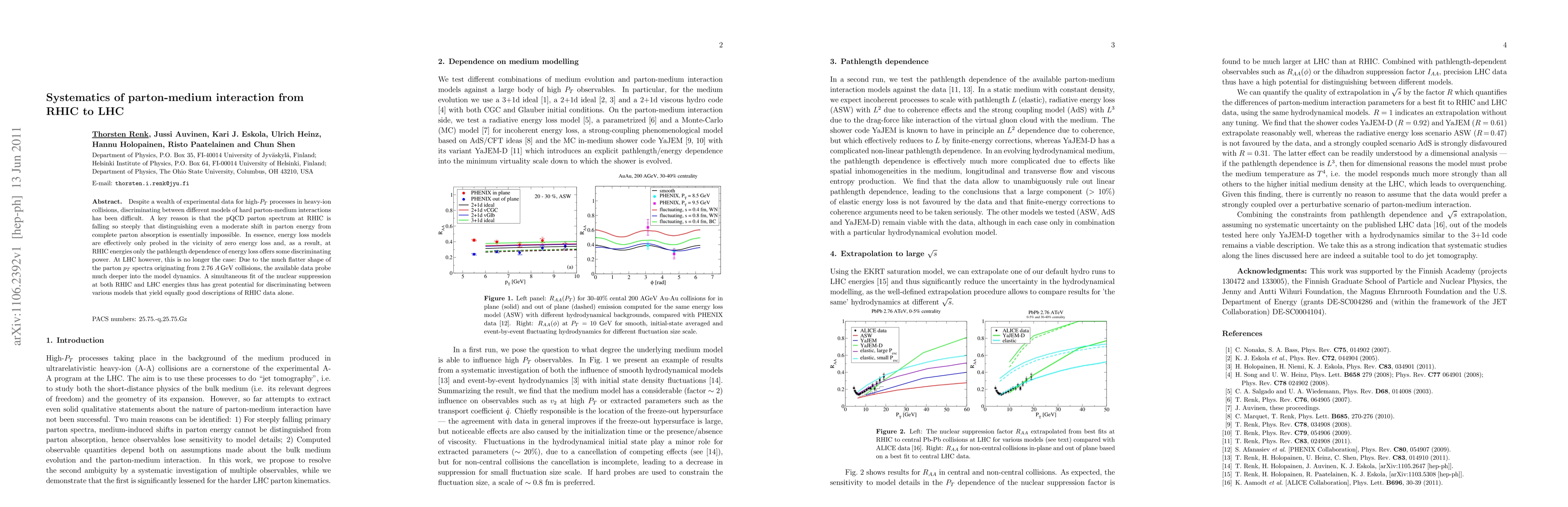 This paper explores the systematics of parton-medium interactions from RHIC to LHC energies, highlighting the difficulty in distinguishing between different energy loss models at RHIC due to steep pQCD spectra. At LHC, flatter p_T spectra provide a better probe into model dynamics, offering potential to differentiate models that fit RHIC data equally well.