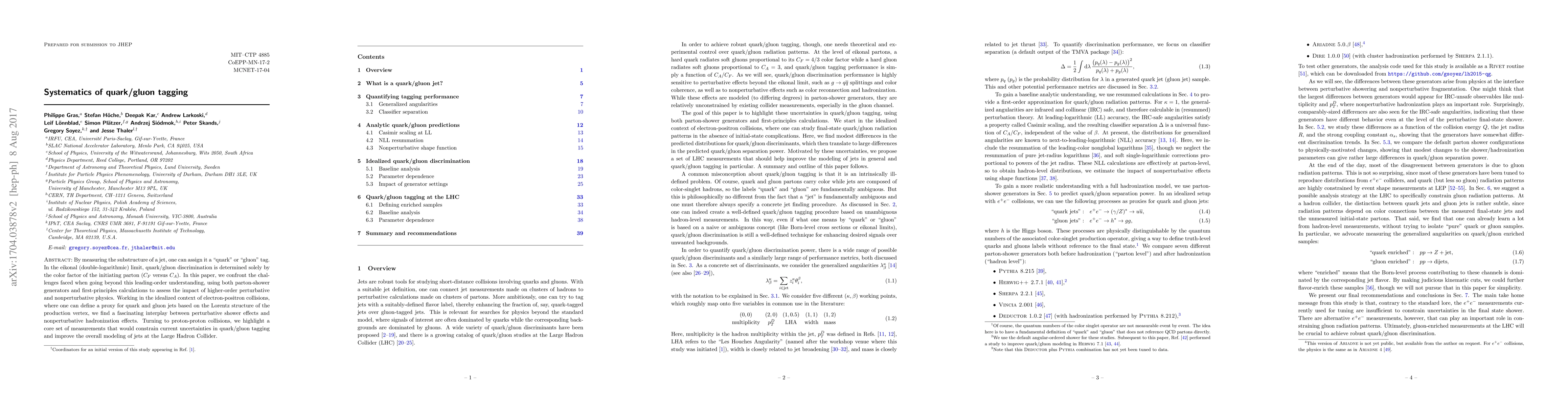This paper explores the complexities of tagging jets as originating from quarks or gluons beyond leading-order approximations, using both theoretical calculations and simulations. It identifies key measurements needed to reduce uncertainties in quark/gluon tagging in proton-proton collisions at the LHC.