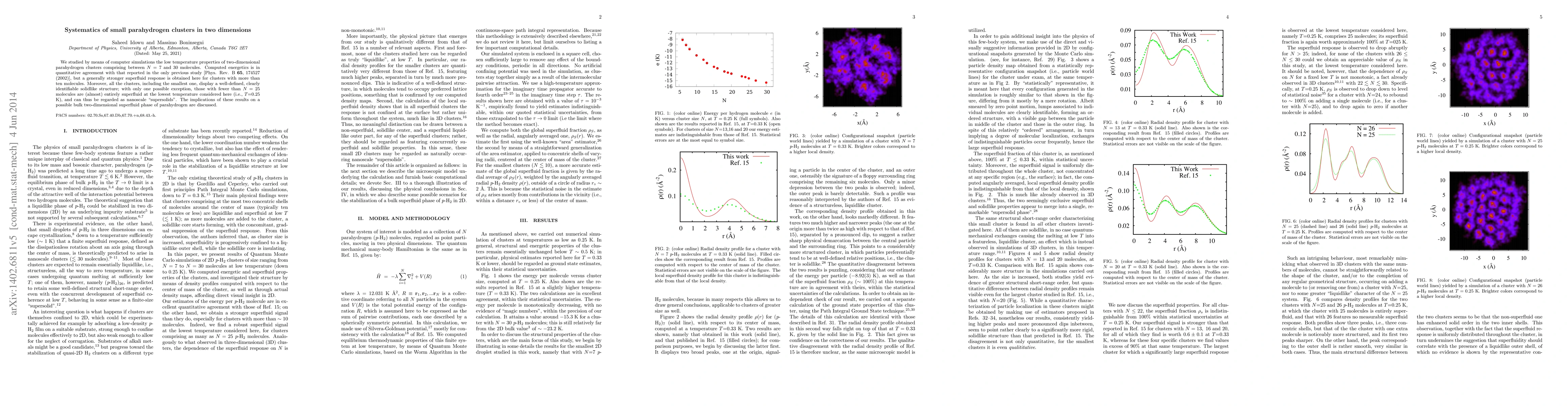 This paper uses computer simulations to study the low-temperature properties of two-dimensional parahydrogen clusters, revealing a stronger superfluid response and identifying solidlike structures in all clusters, with most being nanoscale "supersolids" at 0.25 K. Implications for a potential bulk two-dimensional superfluid phase are discussed.