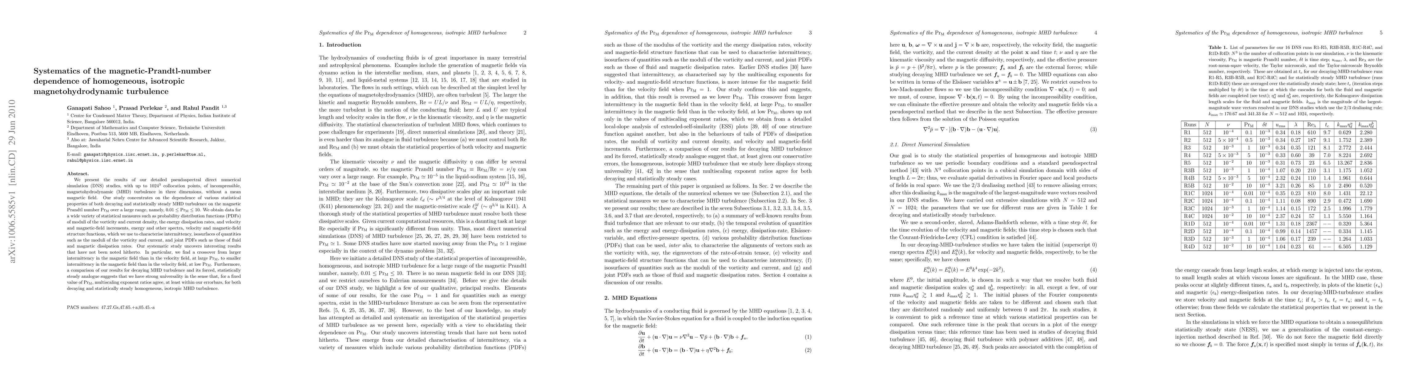 This paper reports on high-resolution DNS studies of magnetohydrodynamic turbulence, focusing on the magnetic Prandtl number's effect on statistical properties. The study reveals a crossover in intermittency between magnetic and velocity fields with varying ${\rm Pr_M}$, and finds strong universality in multiscaling exponents for both decaying and forced MHD turbulence.