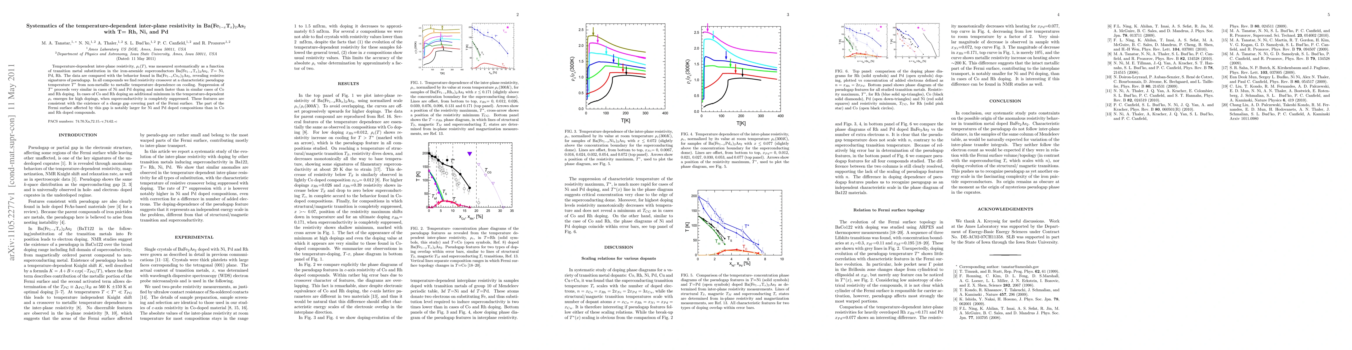 This study systematically investigates the temperature-dependent inter-plane resistivity in Ba(Fe$_{1-x}$T$_x$)$_2$As$_2$ with T= Ni, Pd, Rh, revealing a pseudogap and resistivity crossover at $T^*$. Ni and Pd doping show similar suppression of $T^*$, while Co and Rh doping exhibit a charge gap and additional resistivity minima, indicating a larger affected Fermi surface in Ni and Pd cases.