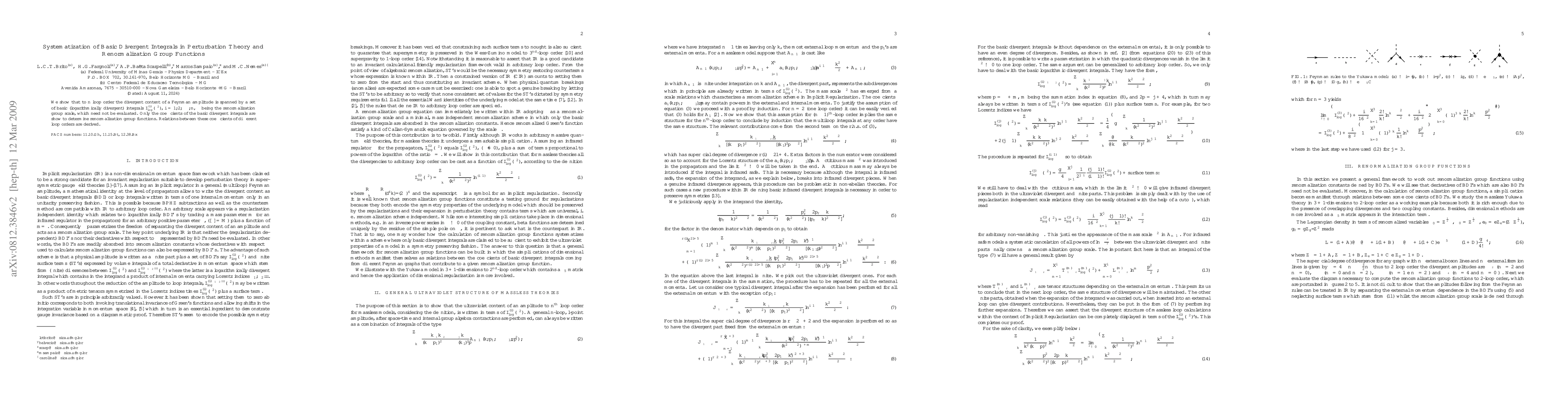 The paper systematizes basic divergent integrals in perturbation theory, revealing that their coefficients, rather than the integrals themselves, determine renormalization group functions. It also derives relations between these coefficient orders.