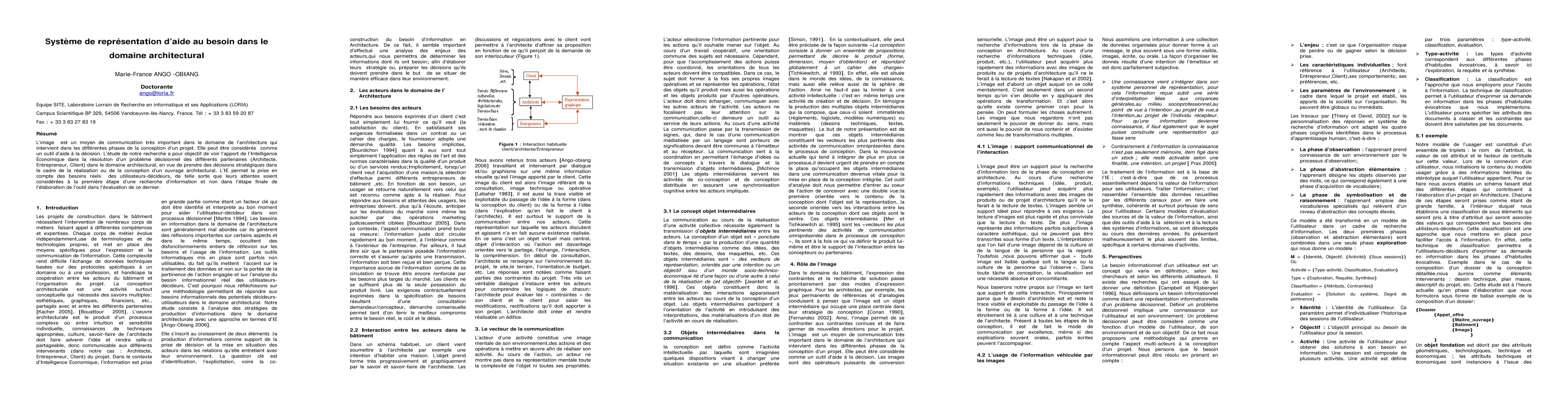The image is a very important mean of communication in the field of architectural who intervenes in the various phases of the design of a project. It can be regarded as a tool of decision-making aid. The study of our research aims at to see the contribution of the Economic Intelligence in the resolution of a decisional problem of the various partners (Architect, Contractor, Customer) in the architectural field, in order to make strategic decisions within the framework of the realization or design of an architectural work. The economic Intelligence allows the taking into account of the real needs for the user-decision makers, so that their waiting are considered at the first stage of a search for information and not in the final stage of the development of the tool in the evaluation of this last.