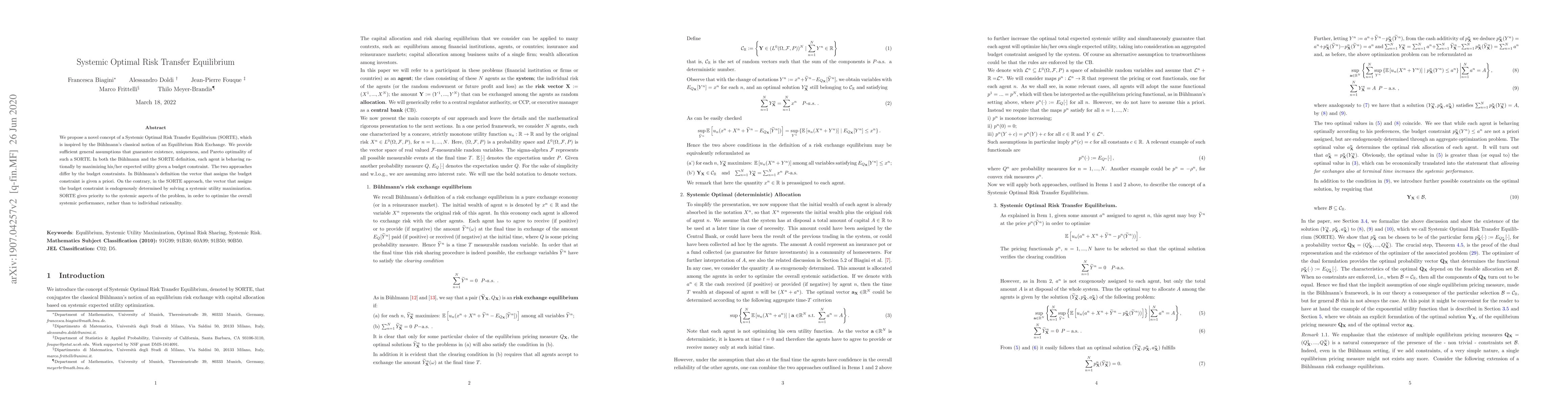 This paper introduces the Systemic Optimal Risk Transfer Equilibrium (SORTE), a concept prioritizing systemic performance over individual rationality. Unlike Bühlmann's Equilibrium Risk Exchange, SORTE endogenously determines budget constraints through systemic utility maximization, ensuring existence, uniqueness, and Pareto optimality.