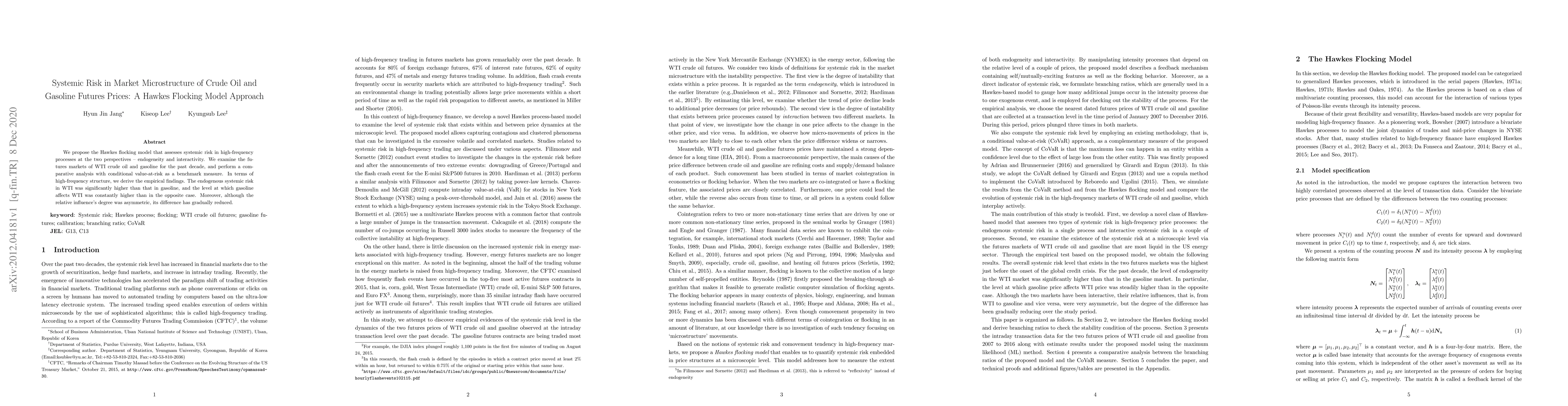 This paper uses a Hawkes flocking model to analyze systemic risk in crude oil and gasoline futures prices, finding that endogenous risk is significantly higher for WTI crude than gasoline, with gasoline having a constant but lower impact on WTI.