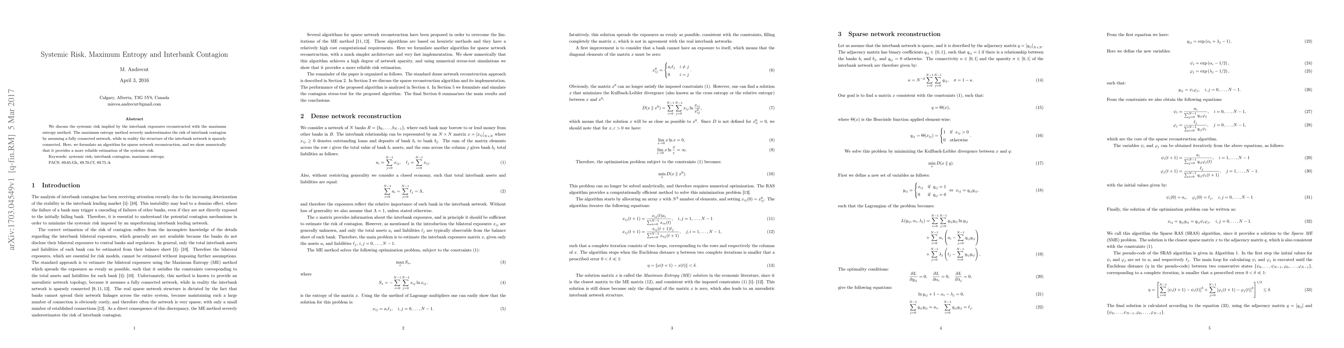 This paper examines systemic risk through interbank exposures, finding that the maximum entropy method underestimates contagion risk due to its assumption of a fully connected network. The authors propose a new algorithm for reconstructing sparse networks, demonstrating its superior accuracy in estimating systemic risk.