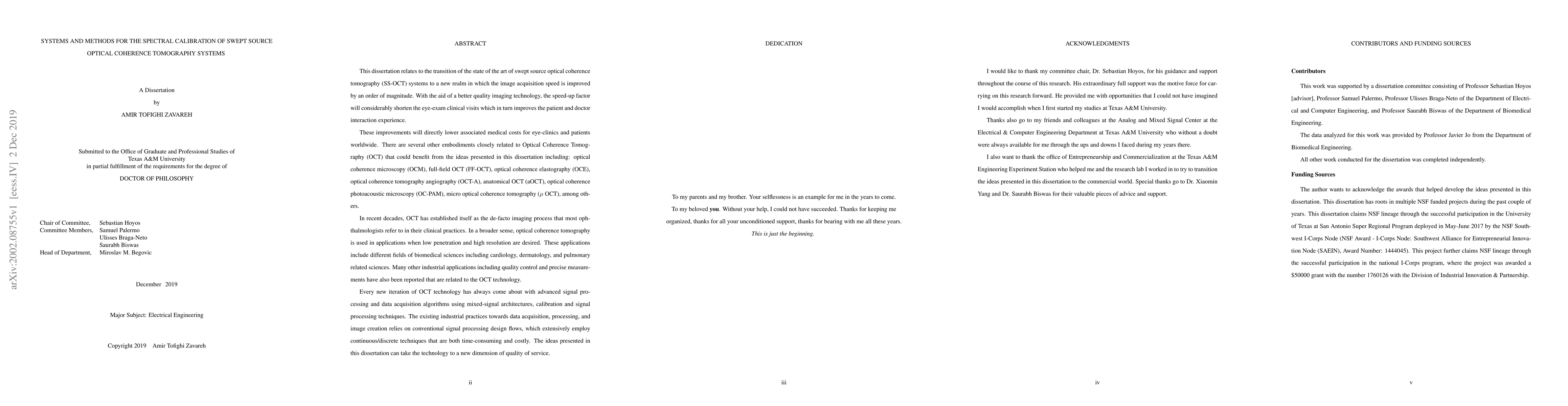 This dissertation relates to the transition of the state of the art of swept source optical coherence tomography (SS-OCT) systems to a new realm in which the image acquisition speed is improved by an order of magnitude. With the aid of a better quality imaging technology, the speed-up factor will considerably shorten the eye-exam clinical visits which in turn improves the patient and doctor interaction experience. These improvements will directly lower associated medical costs for eye-clinics and patients worldwide. There are several other embodiments closely related to Optical Coherence Tomography (OCT) that could benefit from the ideas presented in this dissertation including: optical coherence microscopy (OCM), full-field OCT (FF-OCT), optical coherence elastography (OCE), optical coherence tomography angiography (OCT-A), anatomical OCT (aOCT), optical coherence photoacoustic microscopy (OC-PAM), micro optical coherence tomography ($\mu$ OCT), among others. Every new iteration of OCT technology has always come about with advanced signal processing and data acquisition algorithms using mixed-signal architectures, calibration and signal processing techniques. The existing industrial practices towards data acquisition, processing, and image creation relies on conventional signal processing design flows, which extensively employ continuous/discrete techniques that are both time-consuming and costly. The ideas presented in this dissertation can take the technology to a new dimension of quality of service.