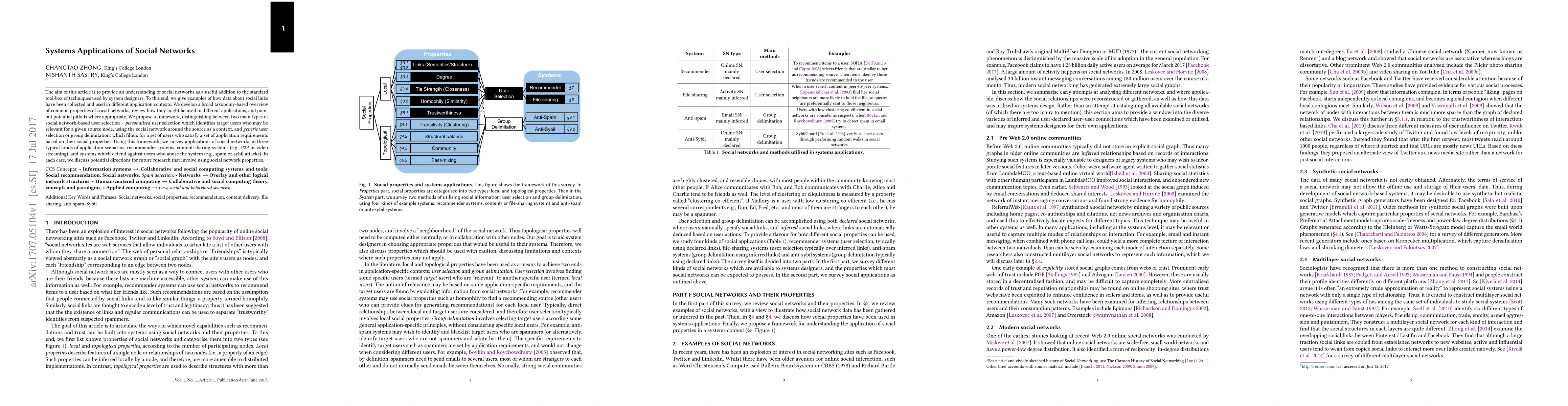 This paper explores the integration of social networks into system design, providing a taxonomy of social network properties and illustrating their applications in recommender systems, content-sharing, and anti-abuse systems. It proposes a framework for personalized and generic user selection based on social networks and outlines future research directions.