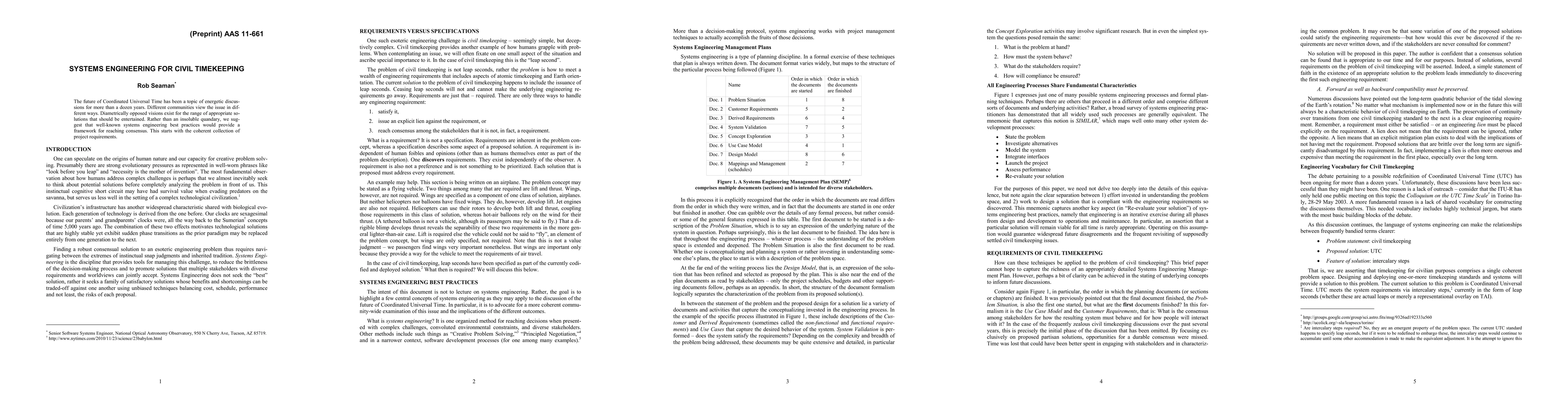 The future of Coordinated Universal Time has been a topic of energetic discussions for more than a dozen years. Different communities view the issue in different ways. Diametrically opposed visions exist for the range of appropriate solutions that should be entertained. Rather than an insoluble quandary, we suggest that well-known systems engineering best practices would provide a framework for reaching consensus. This starts with the coherent collection of project requirements.