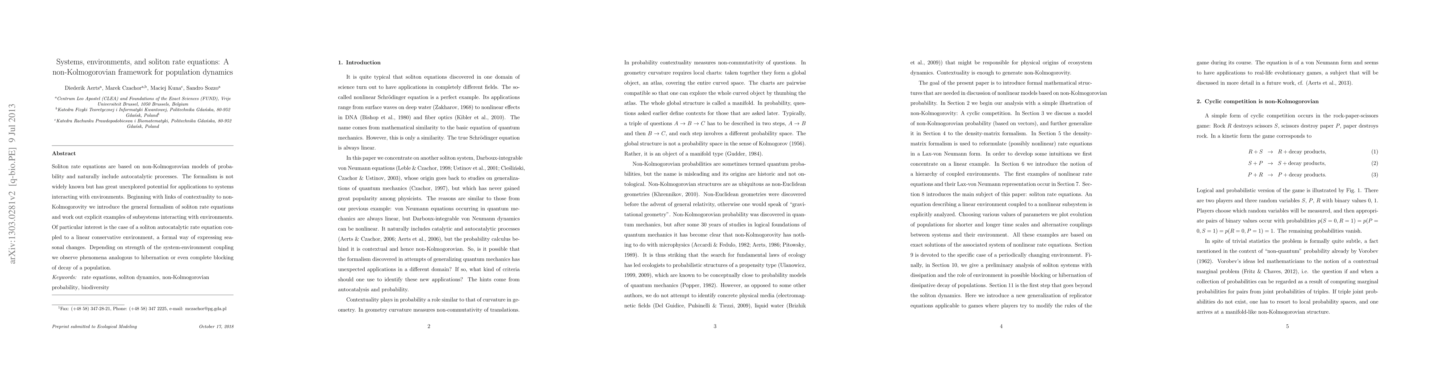Soliton rate equations are based on non-Kolmogorovian models of probability and naturally include autocatalytic processes. The formalism is not widely known but has great unexplored potential for applications to systems interacting with environments. Beginning with links of contextuality to non-Kolmogorovity we introduce the general formalism of soliton rate equations and work out explicit examples of subsystems interacting with environments. Of particular interest is the case of a soliton autocatalytic rate equation coupled to a linear conservative environment, a formal way of expressing seasonal changes. Depending on strength of the system-environment coupling we observe phenomena analogous to hibernation or even complete blocking of decay of a population.