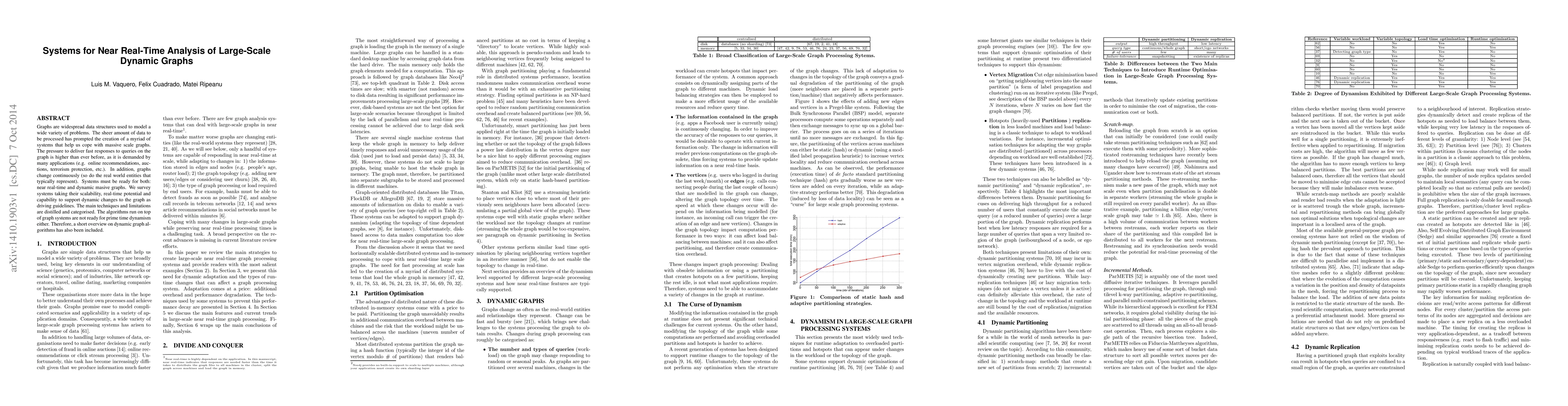 This research paper explores systems for analyzing large-scale dynamic graphs in near real-time, highlighting key techniques and limitations to address growing demands from applications such as online recommendations and terrorism protection.