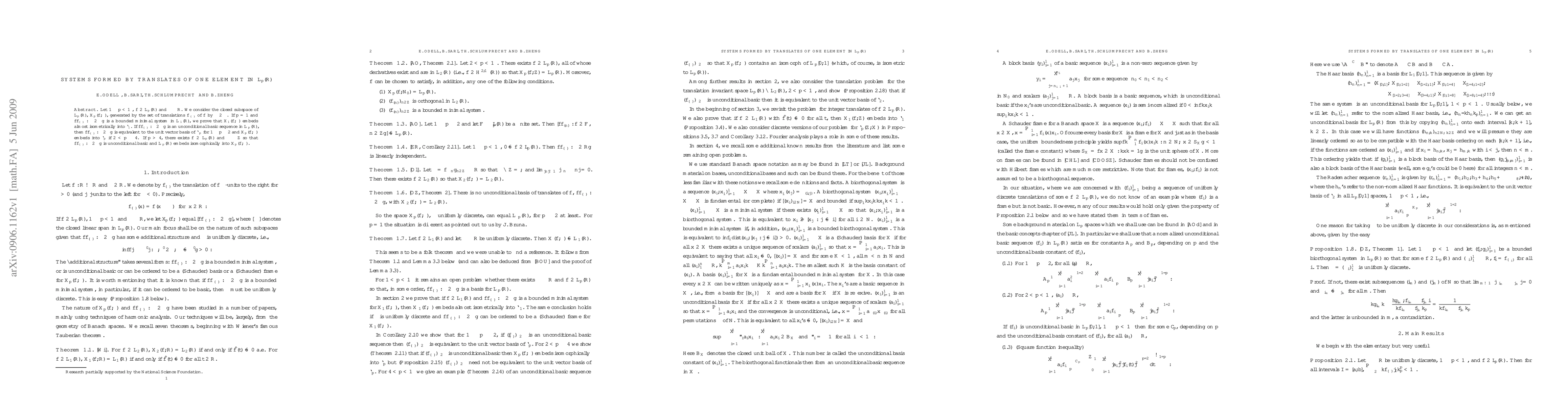 The paper explores how translations of a function in $L_p( eal)$ form a closed subspace that embeds into $ell_1$ or $ell_p$ for certain conditions on the parameters $p$, $f$, and $oxed{eta}$.