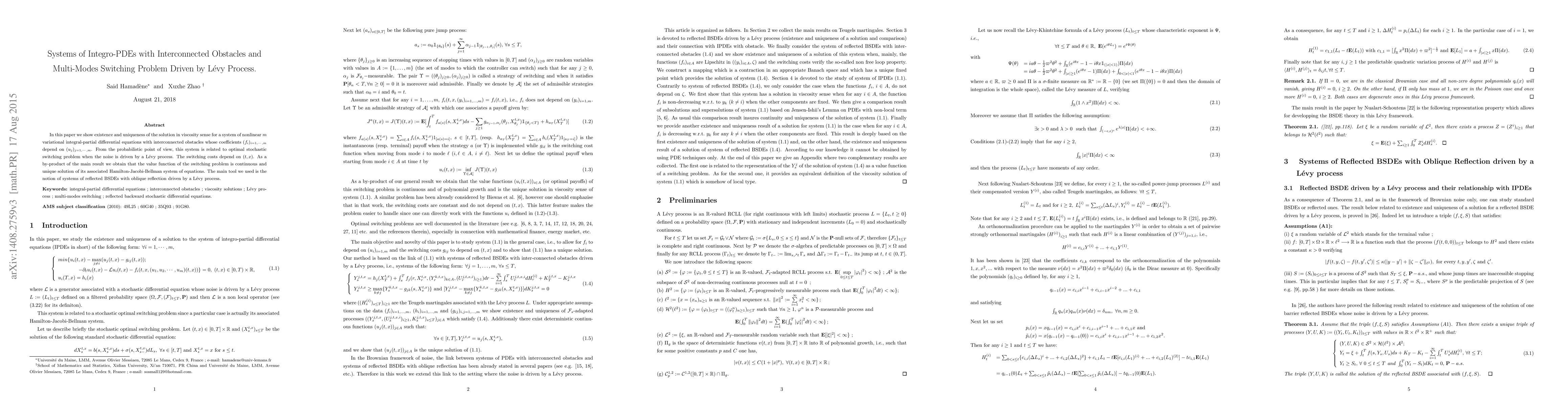 A research paper proves the existence and uniqueness of solutions to a system of nonlinear equations with interconnected obstacles driven by a Lévy process, which relates to optimal stochastic switching problems.