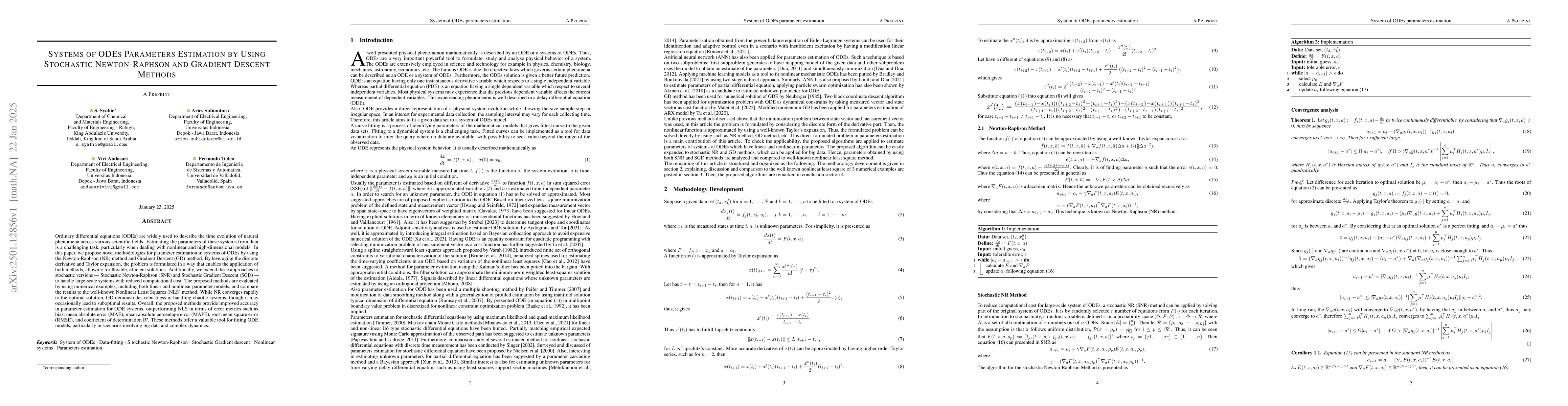 This paper proposes new methodologies for estimating parameters in systems of ordinary differential equations (ODEs) using the Newton-Raphson and Gradient Descent methods, including their stochastic variants, to improve efficiency and accuracy, especially for high-dimensional and chaotic systems. The proposed approaches outperform traditional Nonlinear Least Squares in various error metrics.