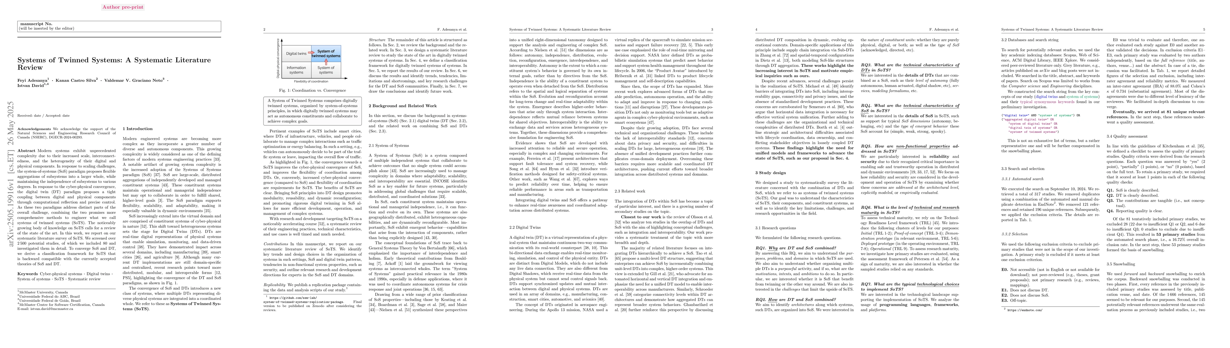 This work stands out by explicitly addressing the convergence of SoS and DT paradigms, providing a novel classification framework for systems of twinned systems.