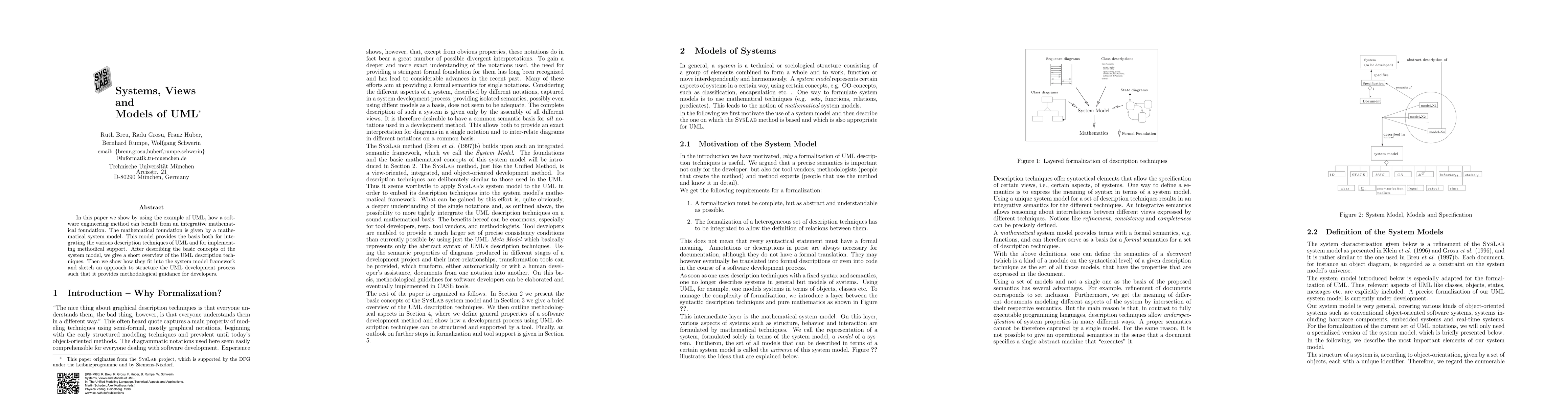 This paper demonstrates how an integrative mathematical system model can enhance UML's various description techniques and provide methodical support for software engineering. It outlines the system model, integrates UML techniques within it, and proposes a structured UML development process for better methodological guidance.