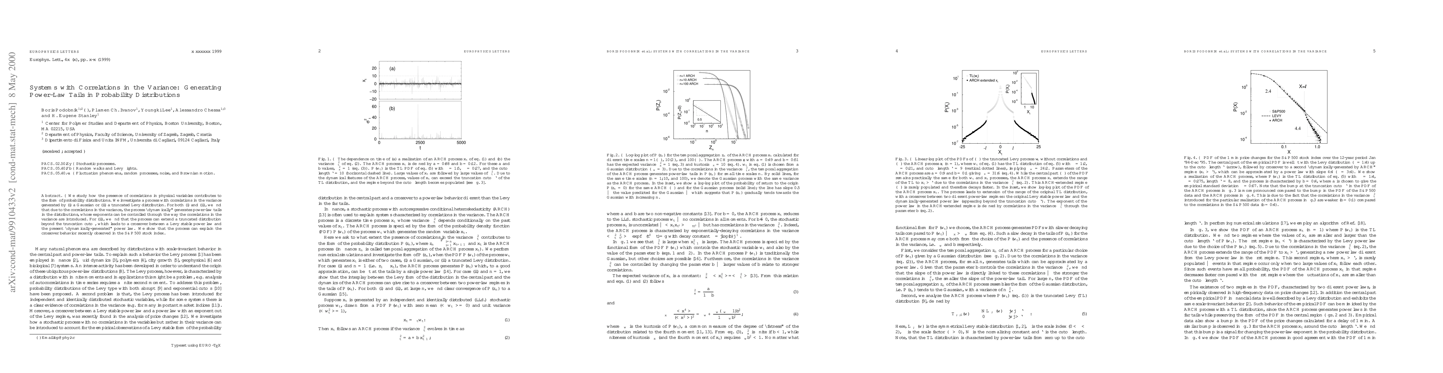 This research explores how correlations in physical variables' variance shape probability distributions. It finds that such correlations, introduced via Gaussian or truncated Lévy distributions, dynamically produce power-law tails with controllable exponents. For truncated Lévy distributions, the process extends beyond the cutoff, causing a transition between Lévy stable and dynamically-generated power laws, which can explain anomalous behavior in the S&P500 stock index.