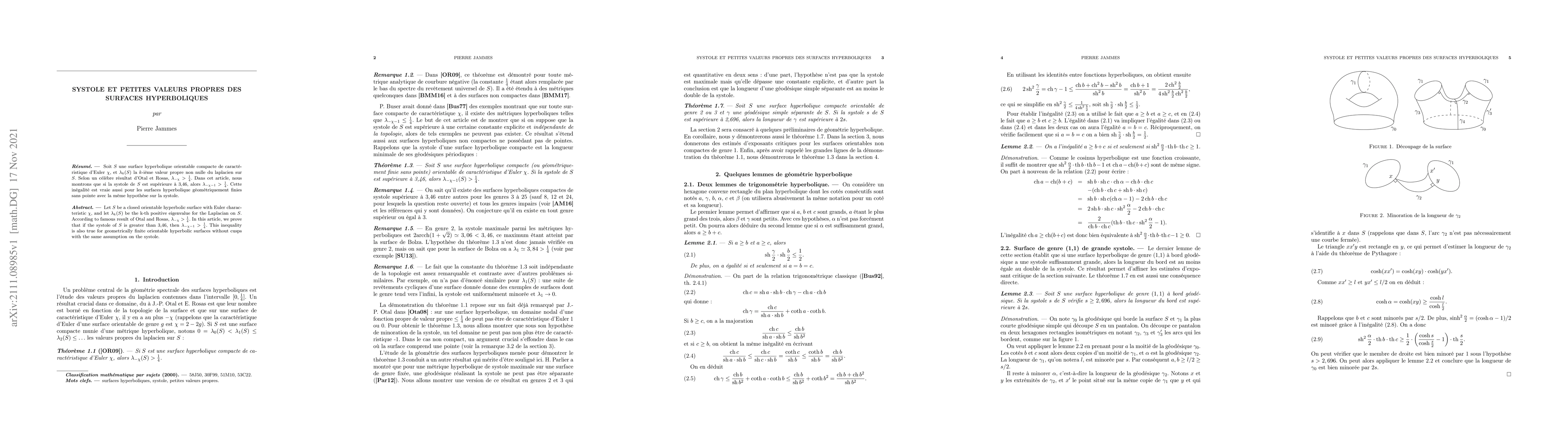 Let $S$ be a closed orientable hyperbolic surface with Euler characteristic$\chi$, and let $\lambda_k(S)$ be the $k$-th positive eigenvalue for the Laplacian on $S$. According to famous result of Otal and Rosas, $\lambda_{-\chi}>\frac14$. In this article, we prove that if thesystole of $S$ is greater than 3,46, then $\lambda_{-\chi-1}>\frac14$.This inequality is also true for geometrically finite orientable hyperbolic surfaces without cusps with the same assumption on the systole.