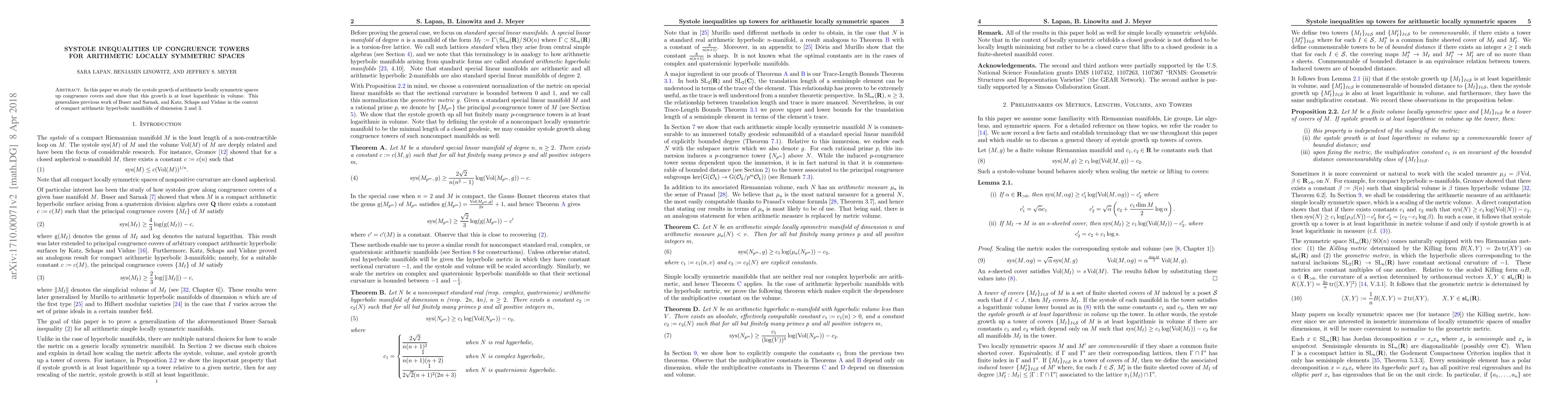 This paper investigates the systole growth in arithmetic locally symmetric spaces, proving that it grows at least logarithmically with volume, thus extending prior results for compact hyperbolic 2- and 3-manifolds to a broader context.