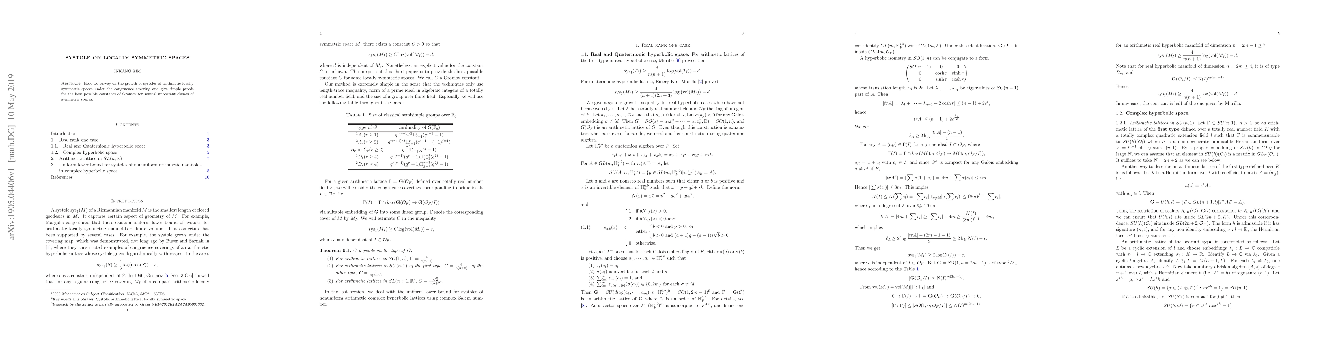 Here we survey on the growth of systoles of arithmetic locally symmetric spaces under the congruence covering and give simple proofs for the best possible constants of Gromov for several important classes of symmetric spaces.