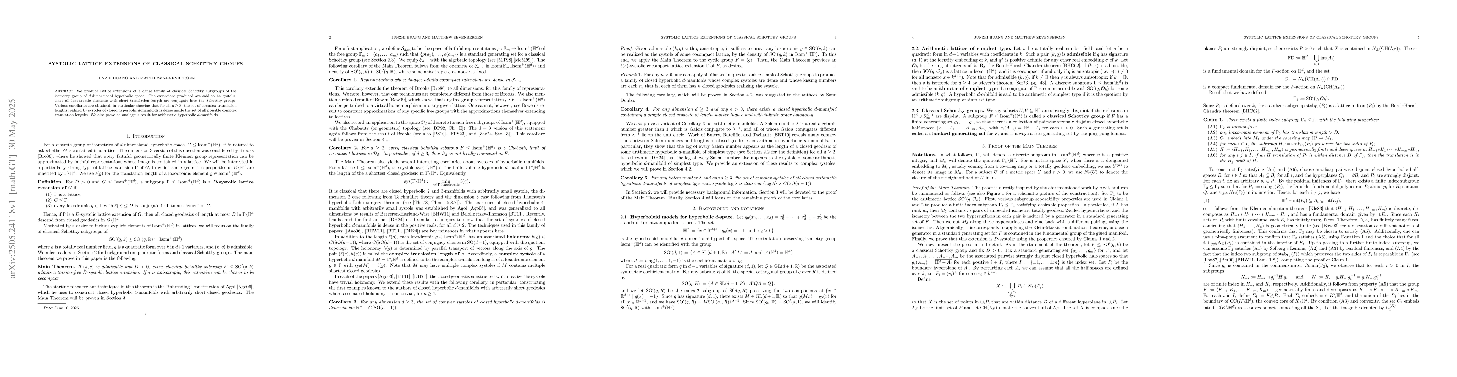 The paper presents a novel method for constructing systolic lattice extensions of classical Schottky groups, providing new insights into the structure of hyperbolic d-manifolds.