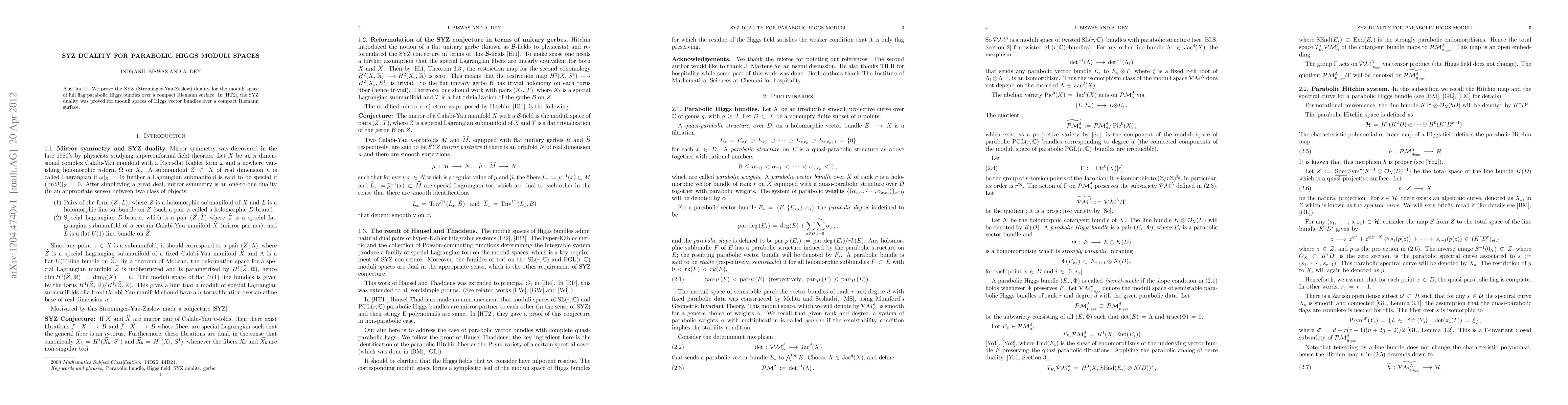 This paper establishes SYZ duality for moduli spaces of full flag parabolic Higgs bundles on compact Riemann surfaces, extending previous results by Hausel and Thaddeus for Higgs vector bundles. The proof leverages the intricate structure of these bundles to confirm the duality.