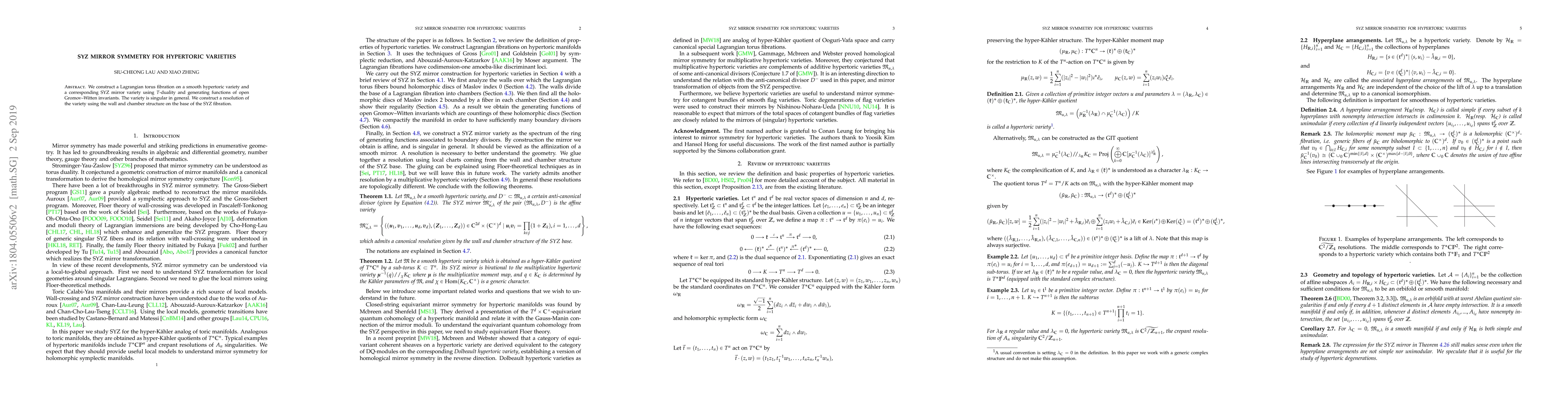 Summary: The paper constructs a Lagrangian torus fibration and an associated SYZ mirror variety for smooth hypertoric varieties, employing $T$-duality and open Gromov-Witten invariants, and resolves singularities via the SYZ base's wall and chamber structure.