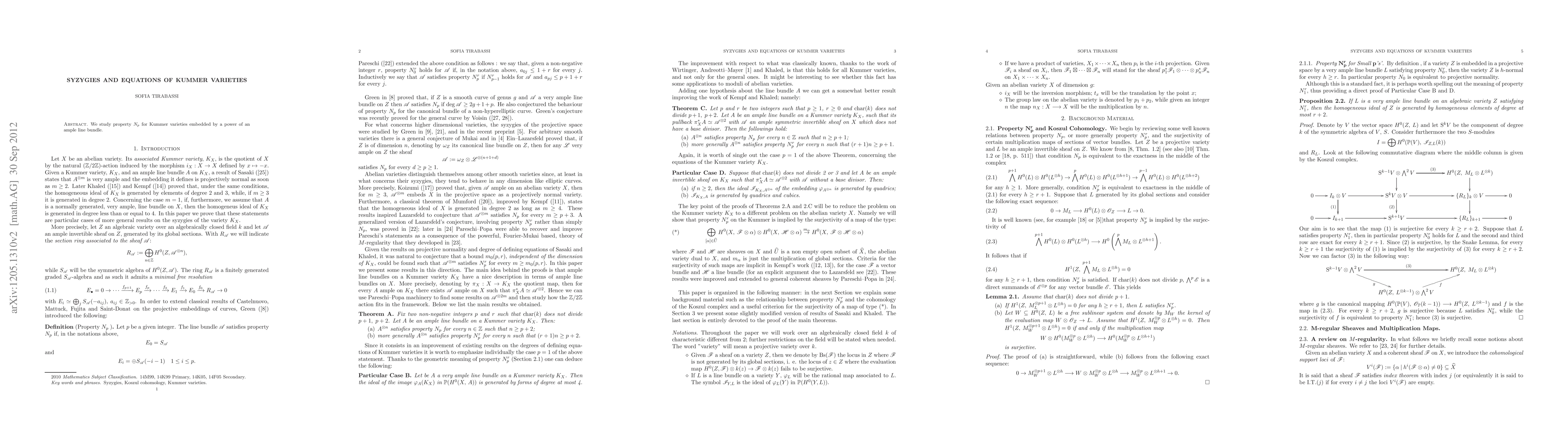 This paper investigates property $N_p$ concerning Kummer varieties embedded via a power of an ample line bundle, focusing on their syzygies and defining equations. The study aims to understand the structural characteristics of these special algebraic varieties.