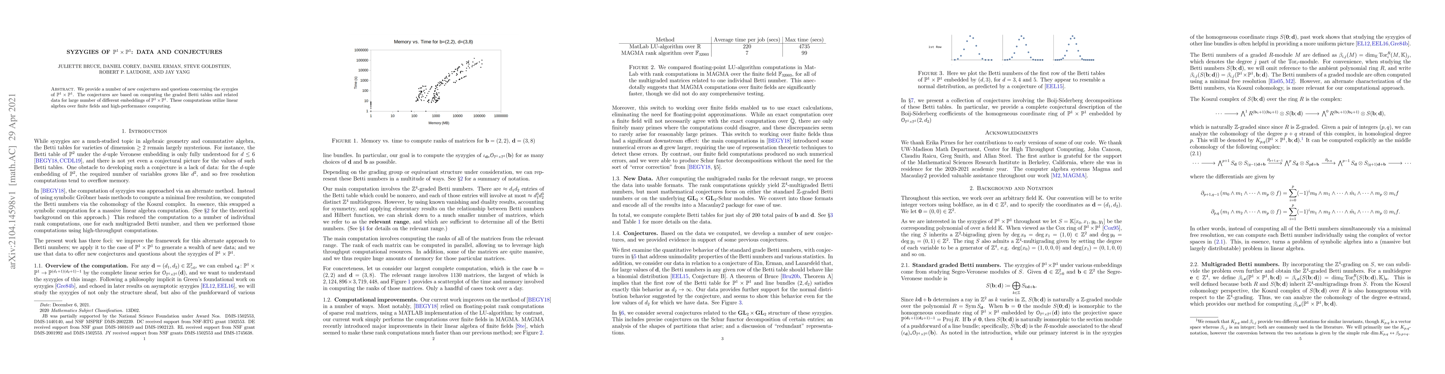 We provide a number of new conjectures and questions concerning the syzygies of $\mathbb{P}^1\times \mathbb{P}^1$. The conjectures are based on computing the graded Betti tables and related data for large number of different embeddings of $\mathbb{P}^1\times \mathbb{P}^1$. These computations utilize linear algebra over finite fields and high-performance computing.