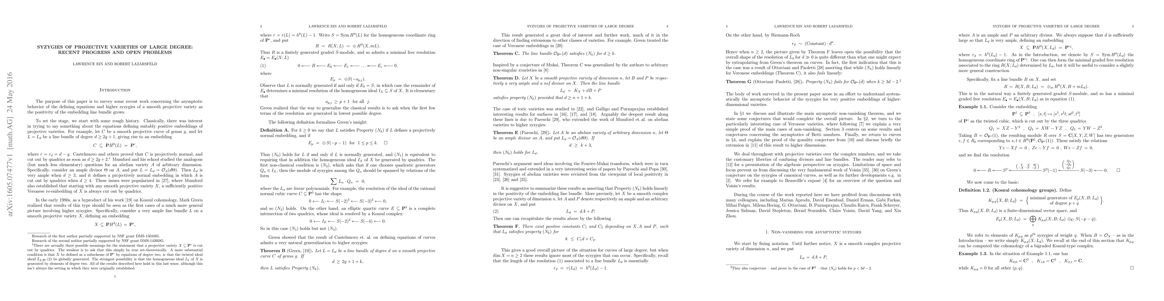This paper is a survey of recent work on the asymptotic behavior of the syzygies of a smooth complex projective variety as the positivity of the embedding line bundle grows. After a quick overview of results from the 1980s and 1990s concerning the linearity of the first few terms of a resolution, we discuss a non-vanishing theorem to the effect that from an asymptotic viewpoint, essentially all of the syzygy modules that could be non-zero are in fact non-zero. We explain the quick new proof of this result in the case of Veronese varieties due to Erman and authors, and we explore some results and conjectures about the asymptotics of Betti numbers. Finally we discuss the case of syzygies of weight one, and the gonality conjecture on the syzygies of curves of large degree. The exposition also discusses numerous open questions and conjectures.