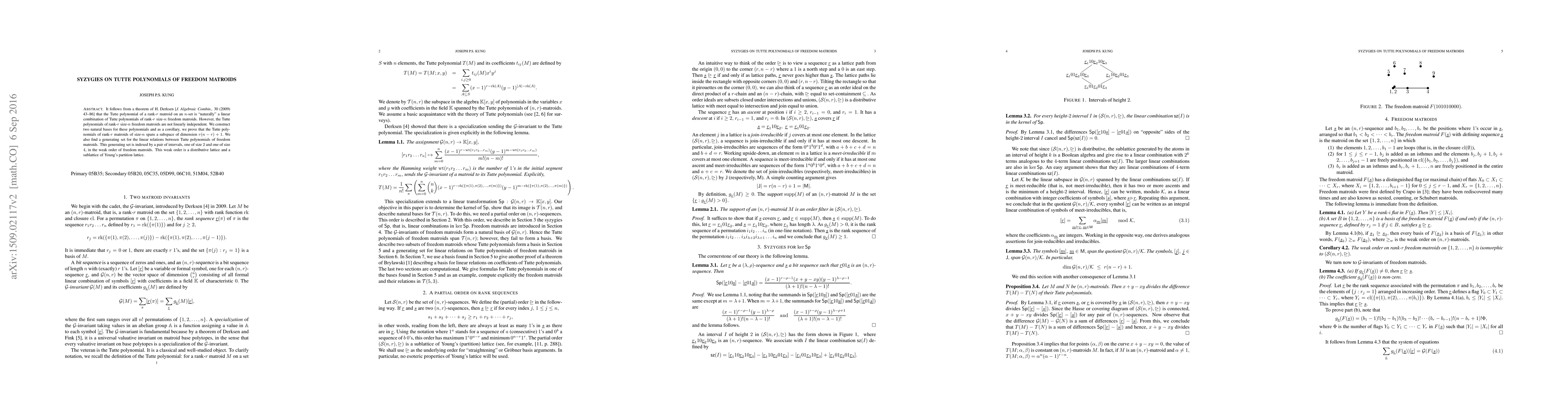 Summary: This paper presents a generating set for linear relations on Tutte polynomials associated with rank-$r$ size-$n$ freedom matroids, providing insight into their algebraic structure. The results contribute to understanding the syzygies within these matroids.