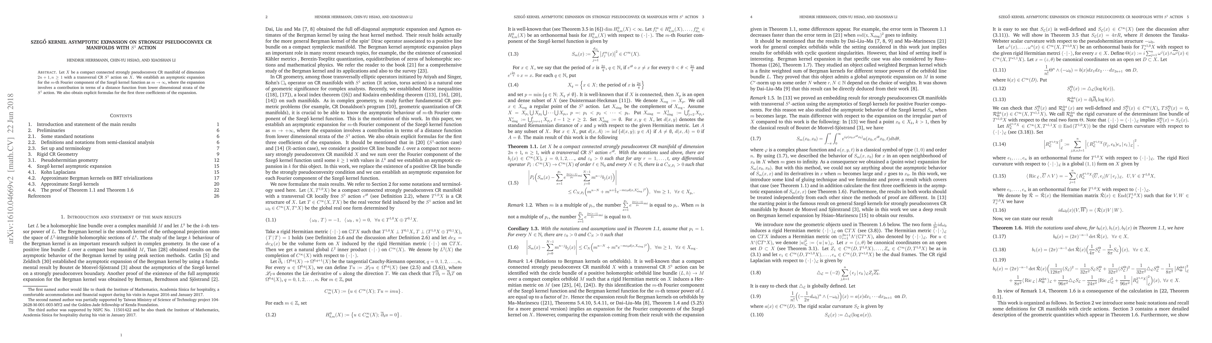 Let $X$ be a compact connected strongly pseudoconvex CR manifold of dimension $2n+1, n \ge 1$ with a transversal CR $S^1$ action on $X$. We establish an asymptotic expansion for the $m$-th Fourier component of the Szeg\H{o} kernel function as $m\rightarrow\infty$, where the expansion involves a contribution in terms of a distance function from lower dimensional strata of the $S^1$ action. We also obtain explicit formulas for the first three coefficients of the expansion.