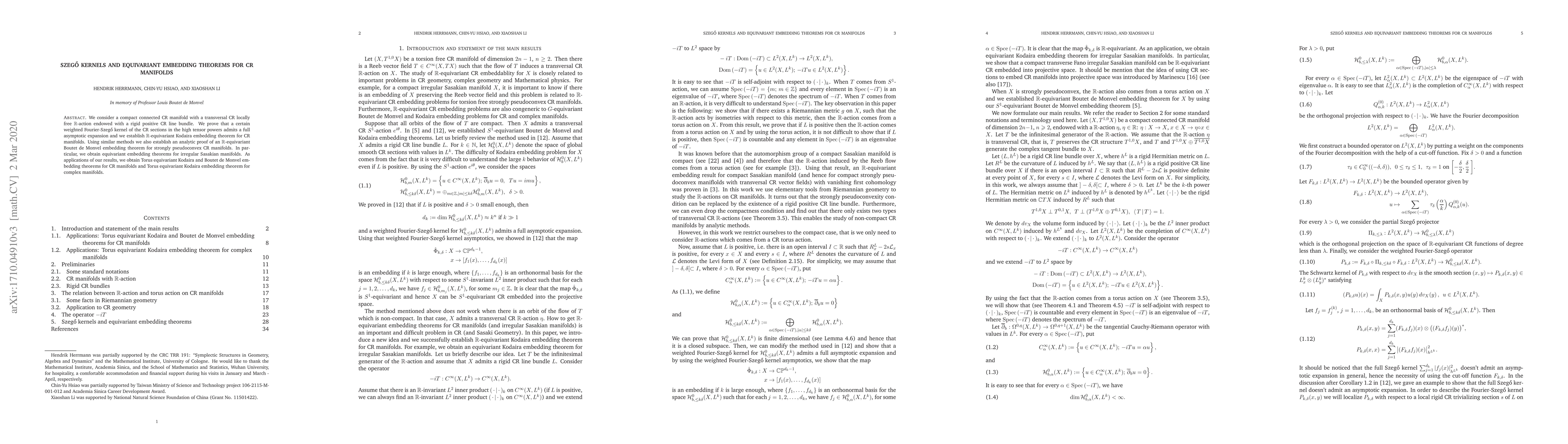We consider a compact connected CR manifold with a transversal CR locally free $\mathbb R$-action endowed with a rigid positive CR line bundle. We prove that a certain weighted Fourier-Szeg\H{o} kernel of the CR sections in the high tensor powers admits a full asymptotic expansion and we establish $\mathbb R$-equivariant Kodaira embedding theorem for CR manifolds. Using similar methods we also establish an analytic proof of an $\mathbb R$-equivariant Boutet de Monvel embedding theorem for strongly pseudoconvex CR manifolds. In particular, we obtain equivariant embedding theorems for irregular Sasakian manifolds. As applications of our results, we obtain Torus equivariant Kodaira and Boutet de Monvel embedding theorems for CR manifolds and Torus equivariant Kodaira embedding theorem for complex manifolds.