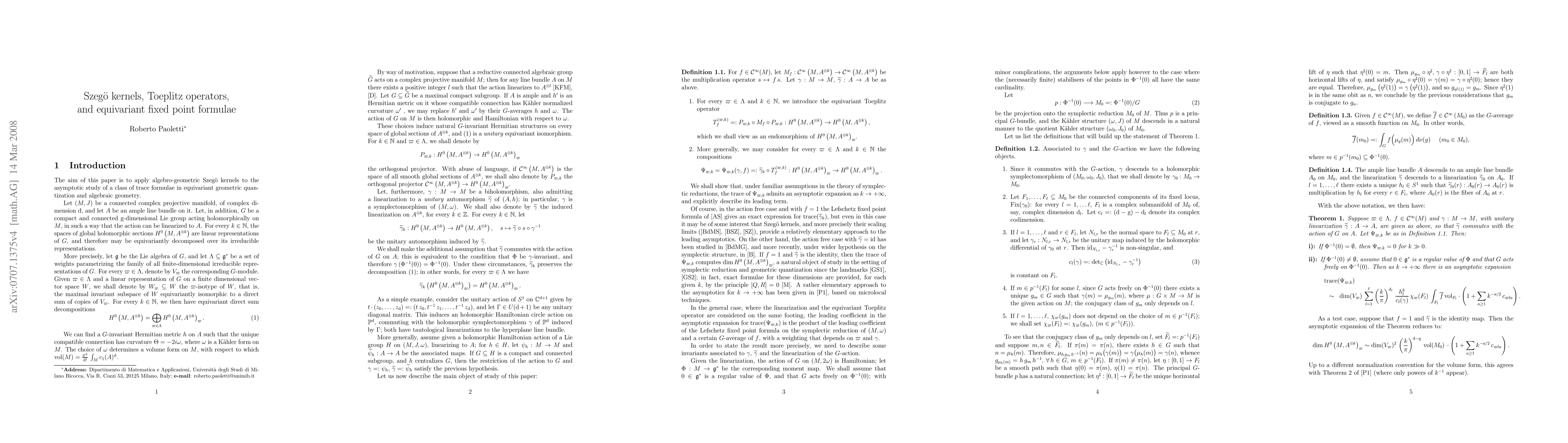 This paper explores how traces of maps on tensor powers of a complex projective manifold exhibit asymptotic expansions as k approaches infinity, with implications for fixed point formulas and equivariant symplectic reductions.