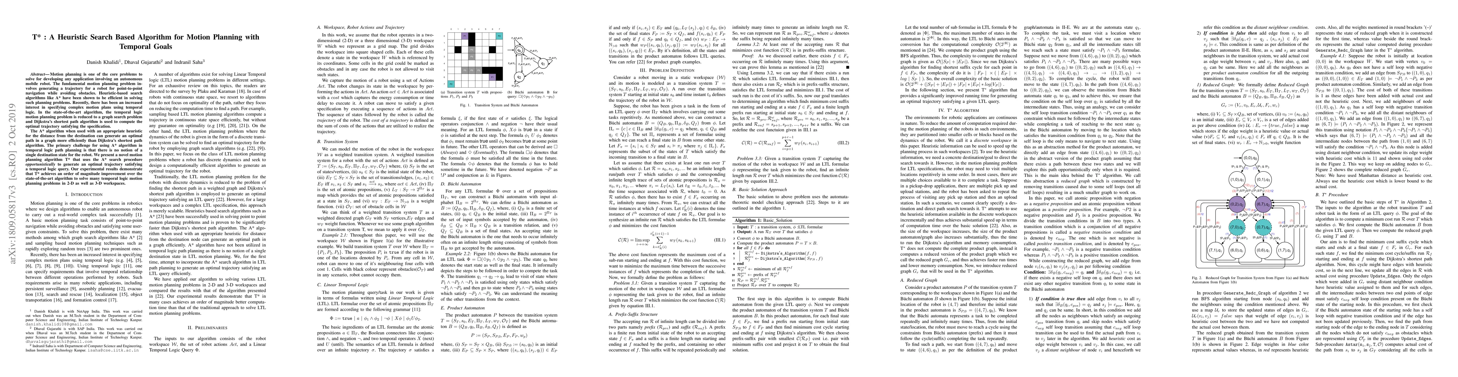 The research presents T*, a heuristic search-based algorithm for motion planning with temporal goals, which opportunistically uses the A* search procedure in temporal logic path planning to generate an optimal trajectory satisfying a temporal logic query.