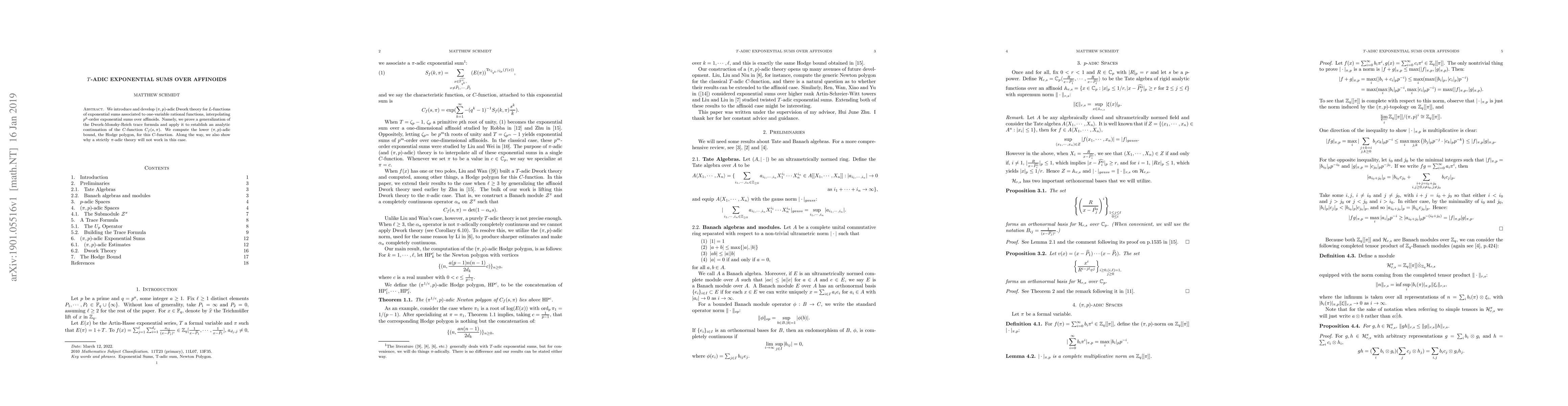 This paper develops $(\pi,p)$-adic Dwork theory for $L$-functions related to exponential sums over affinoids, proving a generalized Dwork-Monsky-Reich trace formula and establishing an analytic continuation of the $C$-function $C_f(s,\pi)$. It also computes the $(\pi,p)$-adic lower bound and Hodge polygon for this function, while demonstrating why a purely $\pi$-adic theory is insufficient.