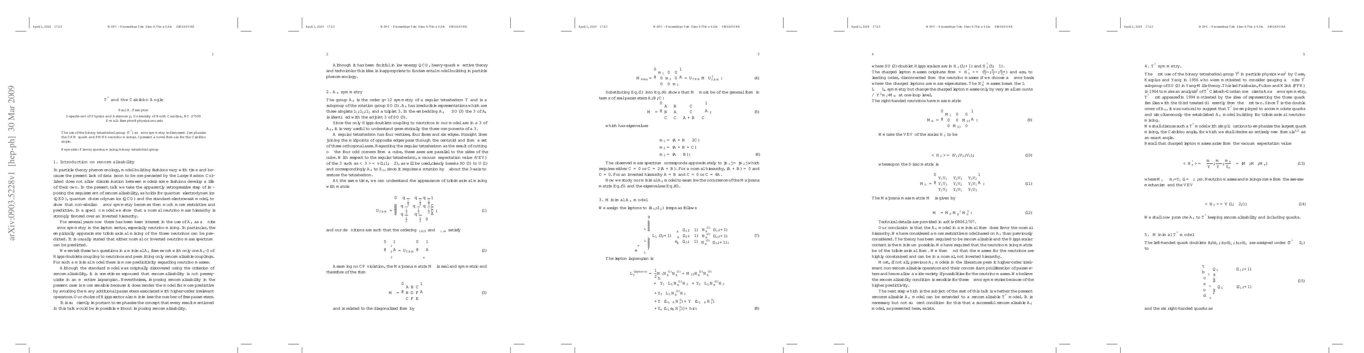 The use of the binary tetrahedral group ($T^{'}$) as flavor symmetry is discussed. I emphasize the CKM quark and PMNS neutrino mixings. I present a novel formula for the Cabibbo angle.