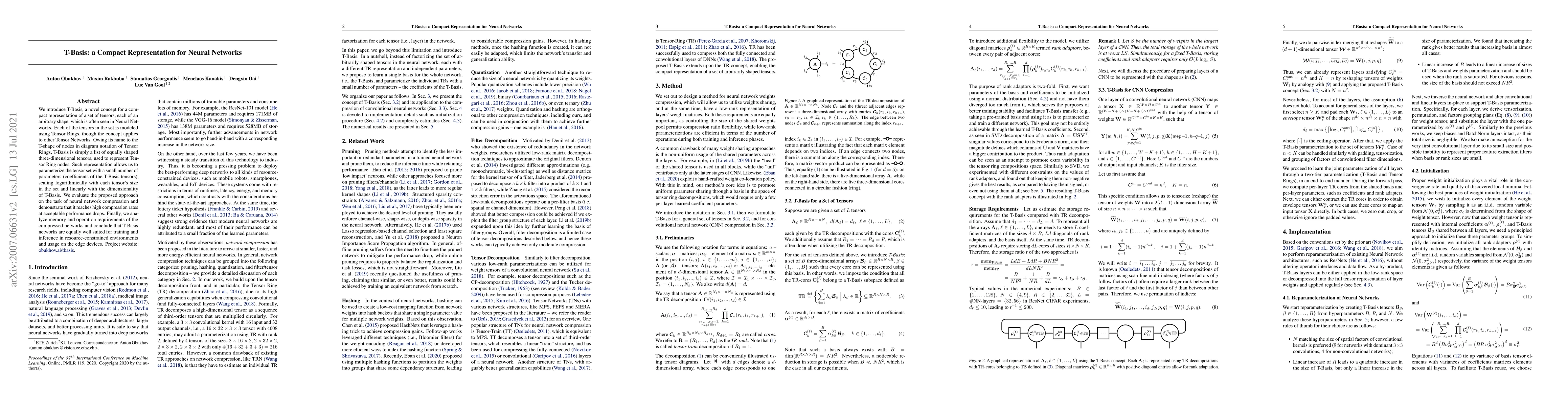 Researchers introduce T-Basis, a compact representation for neural networks that allows for high compression rates with acceptable performance drops, making it suitable for resource-constrained environments.