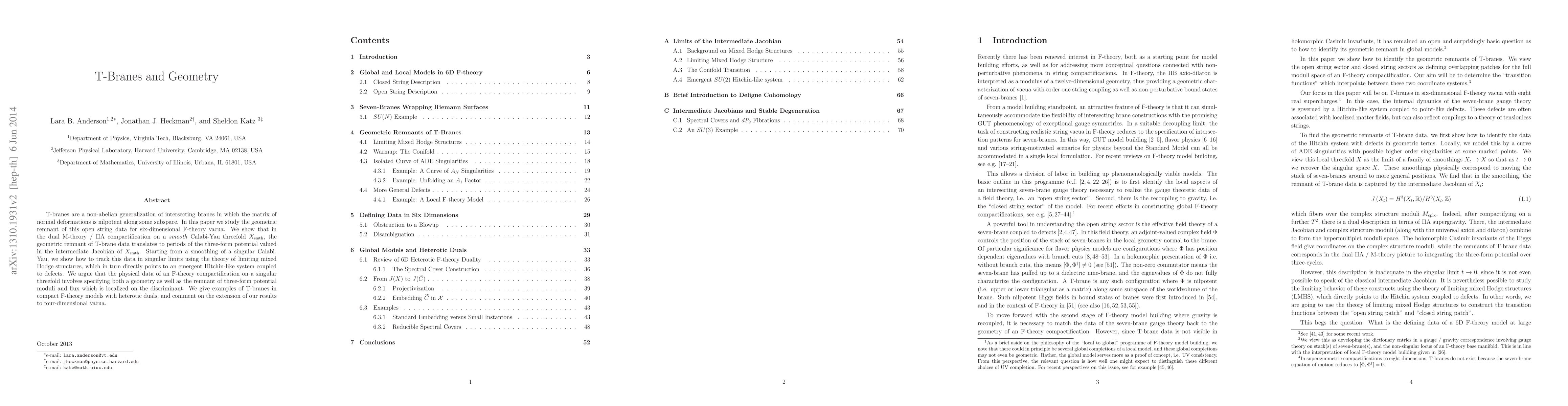 T-branes are a non-abelian generalization of intersecting branes in which the matrix of normal deformations is nilpotent along some subspace. In this paper we study the geometric remnant of this open string data for six-dimensional F-theory vacua. We show that in the dual M-theory / IIA compactification on a smooth Calabi-Yau threefold X, the geometric remnant of T-brane data translates to periods of the three-form potential valued in the intermediate Jacobian of X. Starting from a smoothing of a singular Calabi-Yau, we show how to track this data in singular limits using the theory of limiting mixed Hodge structures, which in turn directly points to an emergent Hitchin-like system coupled to defects. We argue that the physical data of an F-theory compactification on a singular threefold involves specifying both a geometry as well as the remnant of three-form potential moduli and flux which is localized on the discriminant. We give examples of T-branes in compact F-theory models with heterotic duals, and comment on the extension of our results to four-dimensional vacua.