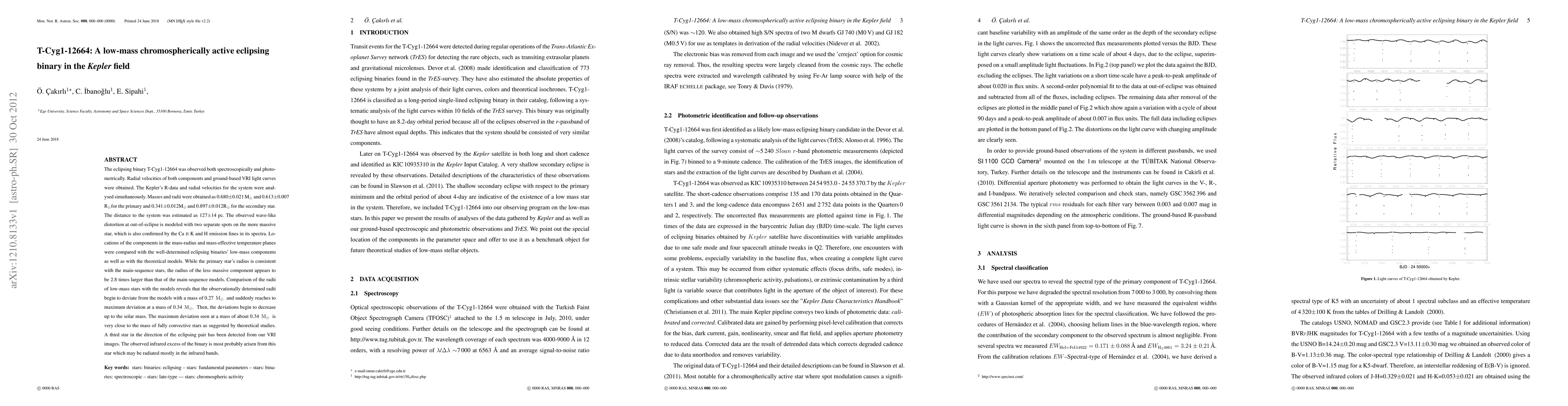 The research paper investigates the low-mass chromospherically active eclipsing binary T-Cyg1-12664, revealing masses and radii for both stars and modeling wave-like distortions attributed to spots on the primary. The study finds significant deviations in the radius of the less massive star compared to theoretical models, particularly around 0.34 M$_{\odot}$, suggesting a possible link to fully convective stars.
