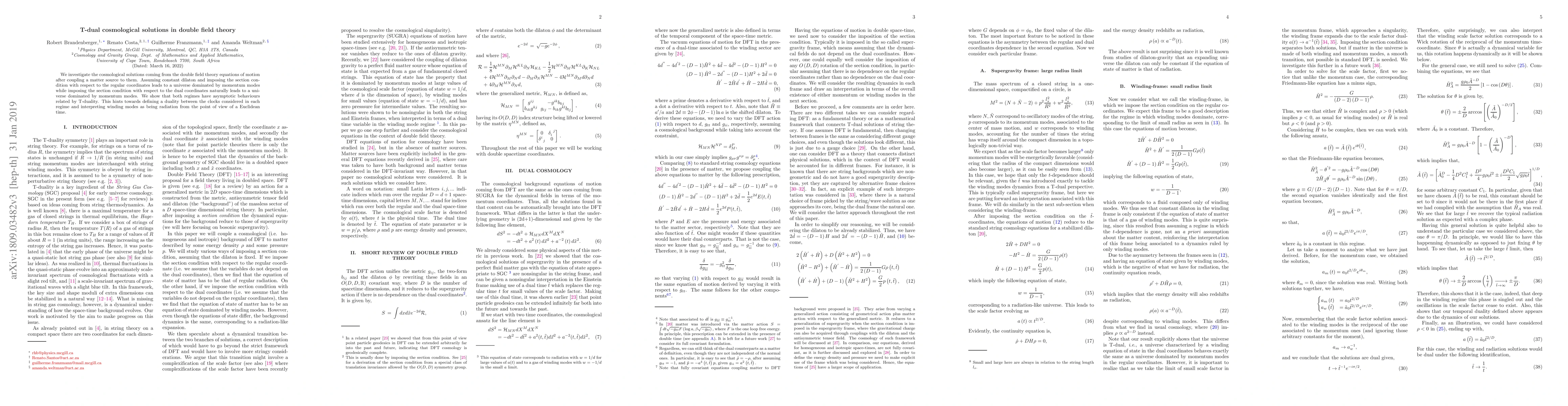 We investigate the cosmological solutions coming from the double field theory equations of motion after coupling a matter source to them. Assuming constant dilaton and imposing the section condition with respect to the regular coordinates leads to a universe dominated by momentum modes while imposing the section condition with respect to the dual coordinates naturally leads to a universe dominated by momentum modes. We show that both regimes have asymptotic behaviours related by T-duality. This hints towards defining a duality between the clocks considered in each regime and interpreting winding modes as being radiation from the point of view of a Euclidean time.